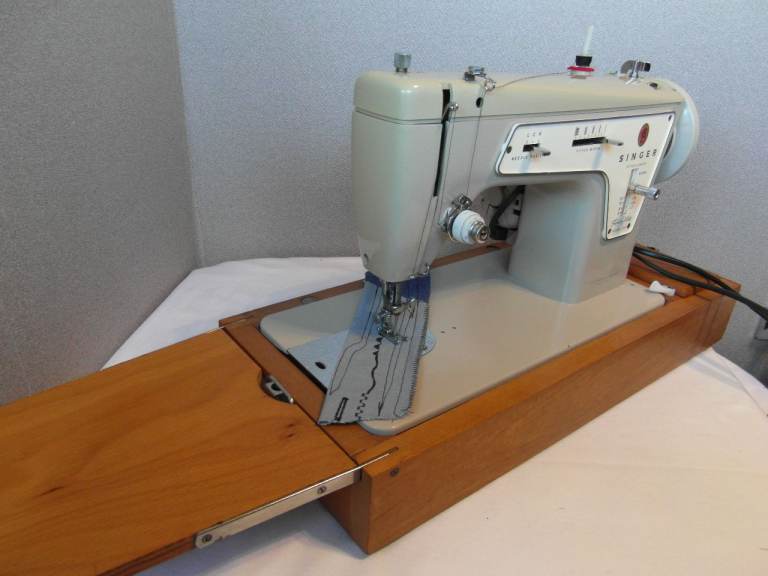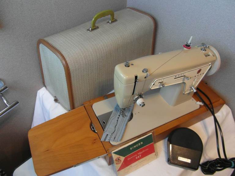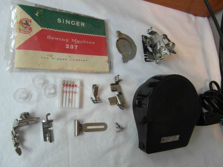 Runs great, professionally serviced and sample on machine shows cotton, denim and leather, all done with standard needle. Complete with updated variable speed foot control, one stitch at a time, full speed ahead or anywhere in between. Fitted light makes life easier. Great and handy extension plate on left end of base for those large awkward jobs, with handy wee covered compartment for holding odds and ends at other side. Nice hard carry/storage cover plus original 237 instructions on using and maintaining machine (more info online).
