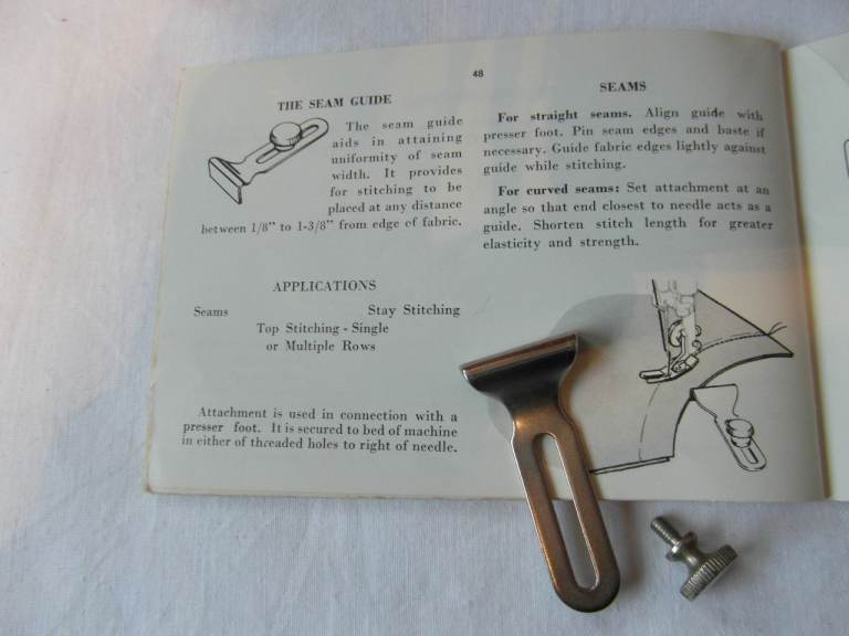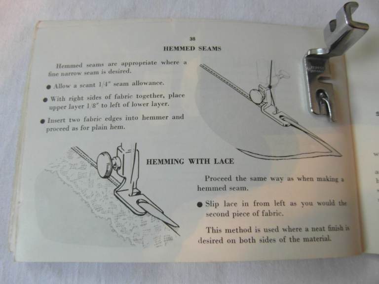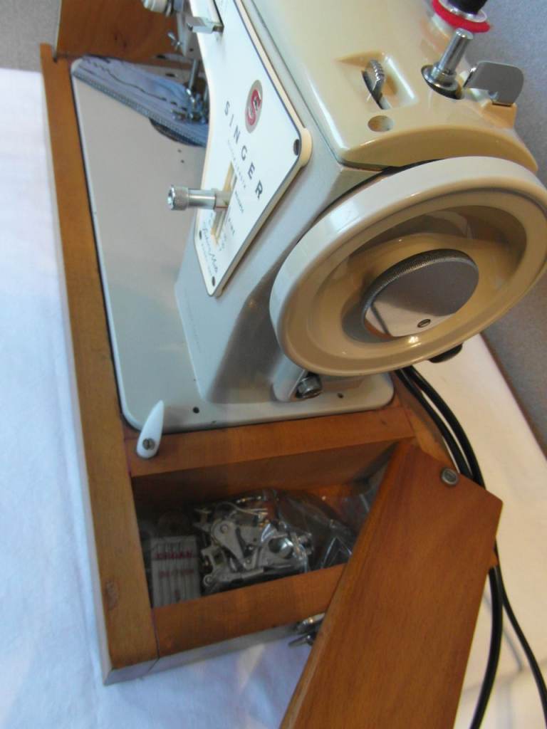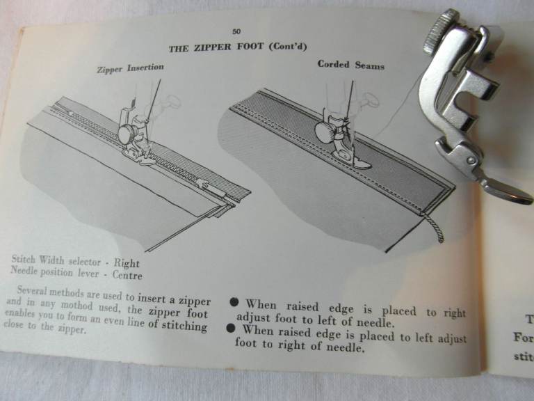 Attachments include invaluable zipper foot, narrow hemmer, binder, ruffler, seam guide, special purpose foot (for satin stitch embroidery, appliqué, buttonholes etc) and straight stitch feed cover (for darning!) With spare bobbins and needles all included.