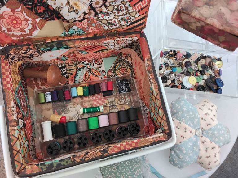 Retro sewing box buttons & cottons & more lovely