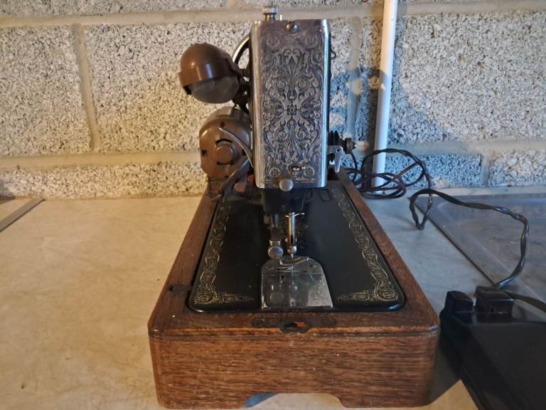 Electric N99 Singer Sewing Machine. The sewing machine was working perfectly, however, it now requires a new up take lever, which is available on ebay for around £10. Good as new except for this defect. Still has the original instructions booklet.