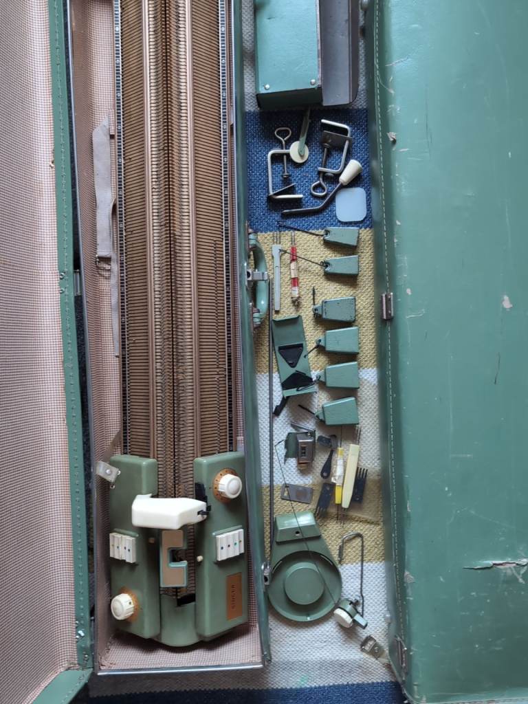 Two Singer Suitcase knitting machines from circa 1950