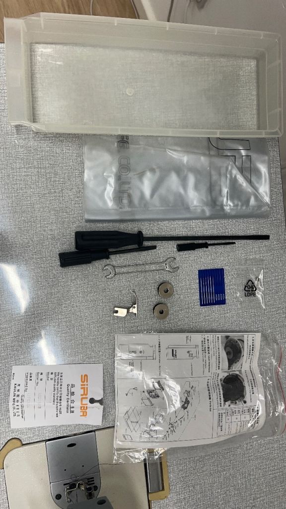 • Complete Set: Industrial table with wheels for easy moving, thread stand, and foot pedal.