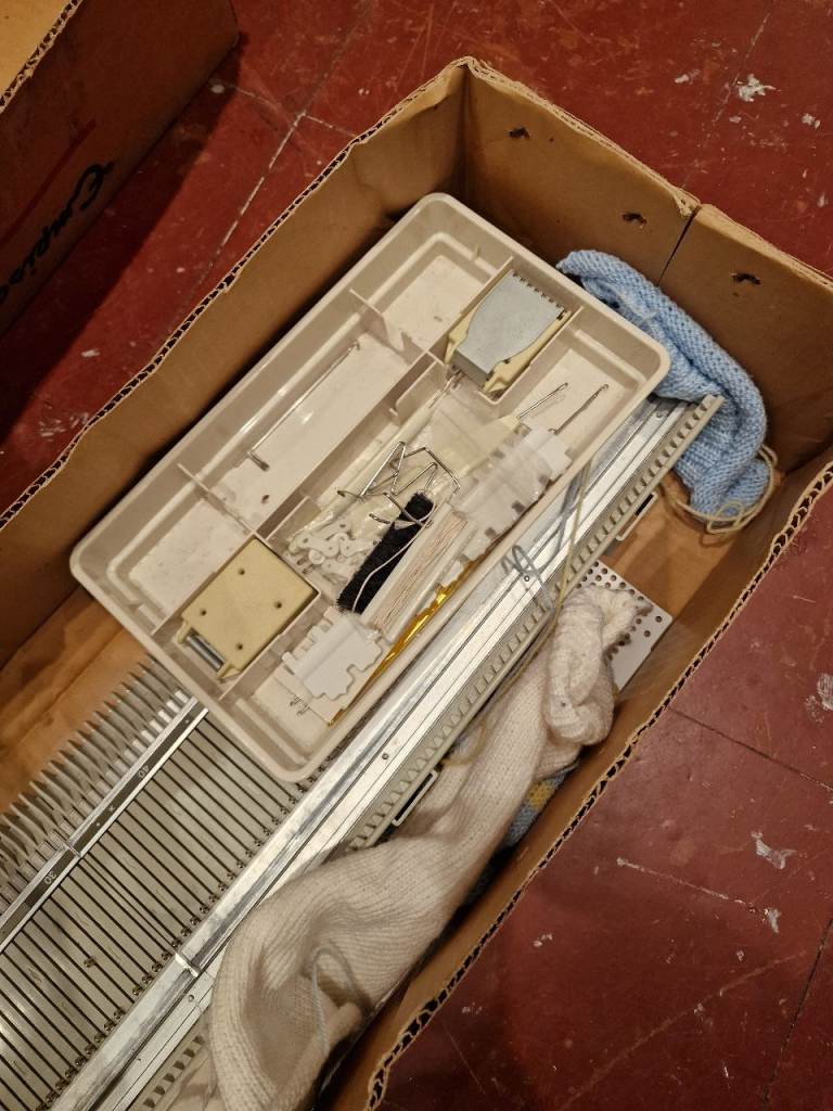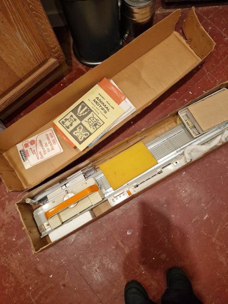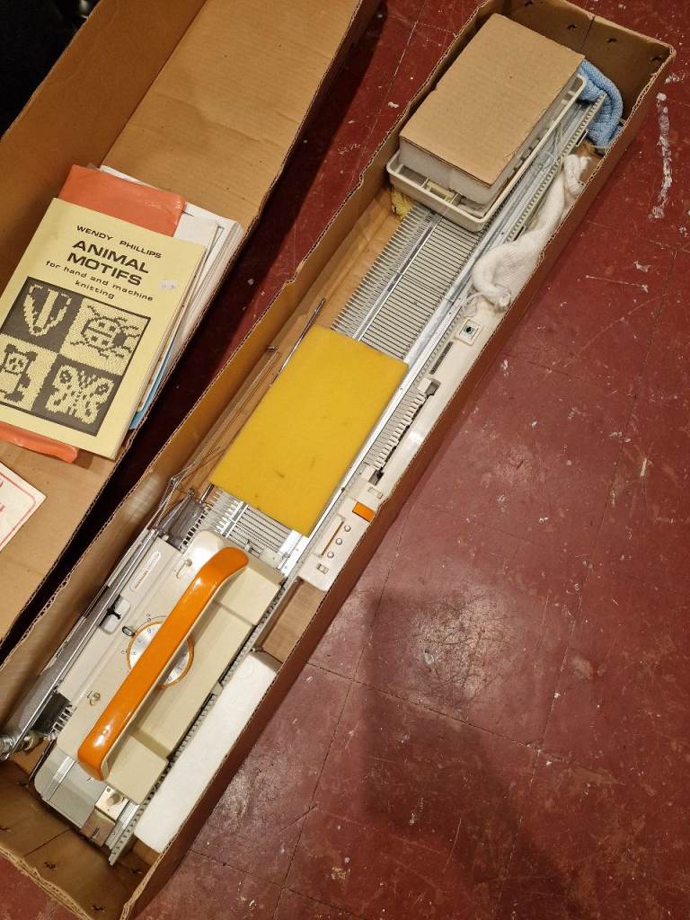 a vintage Empisal - Knitmaster HK 160 knitting machine in its original box.