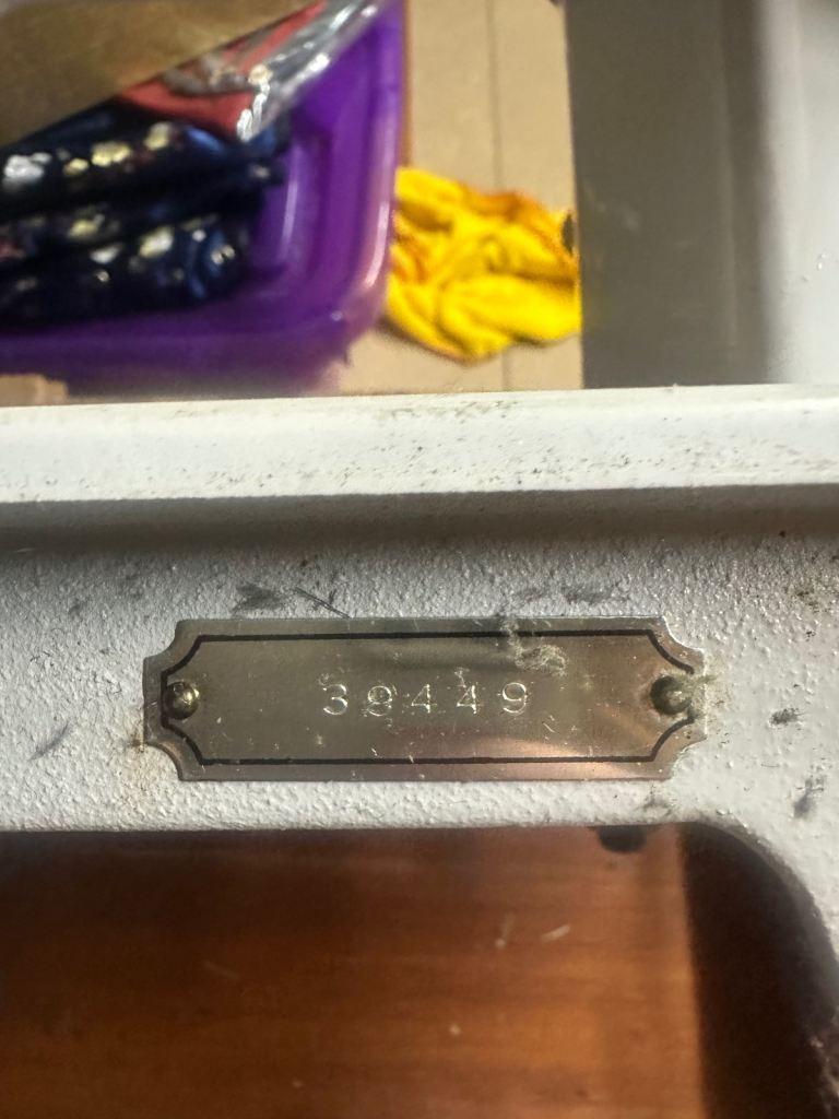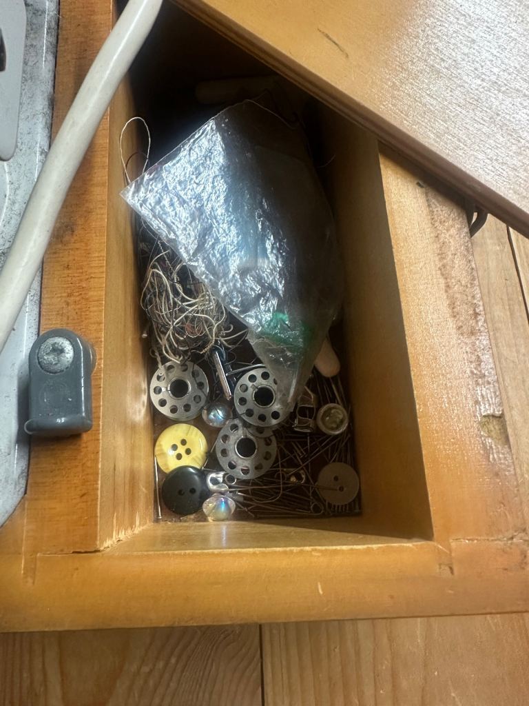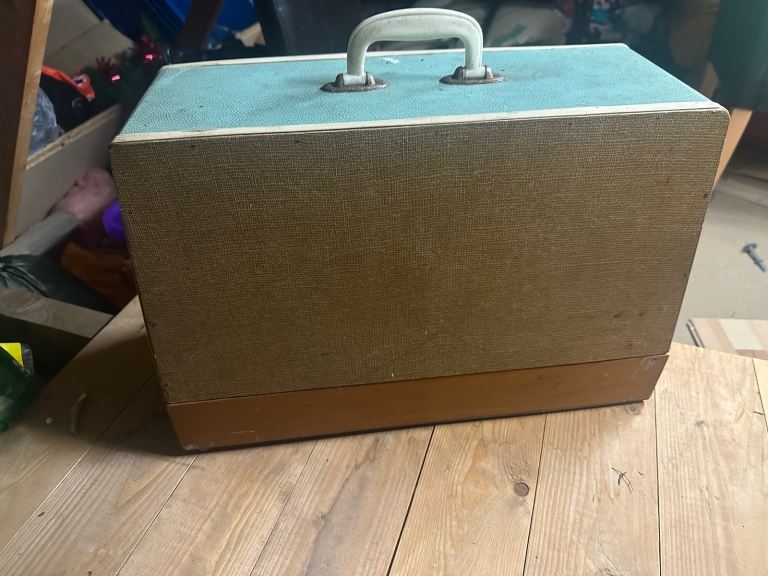 I believe this to be 1960s vintage sewing machine, in working order ( as far as I can tell) light works and pedal moves the motor around.