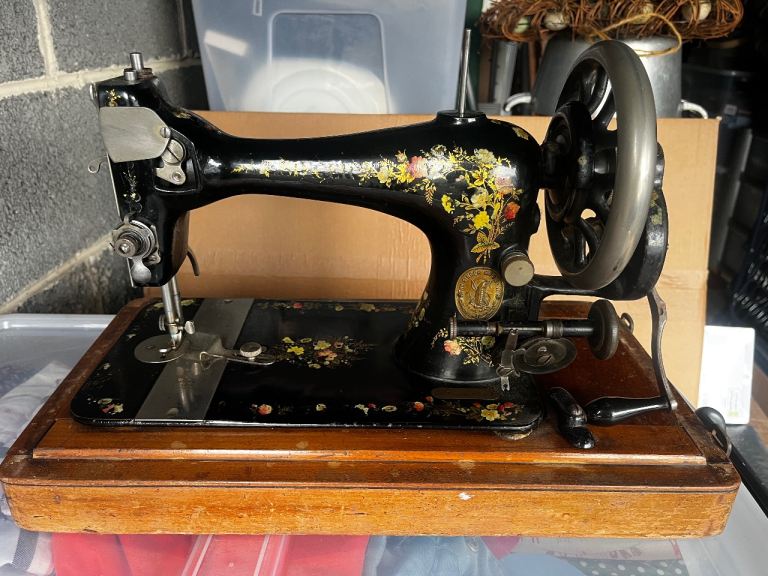 The machine is in good condition with general signs of age and use. The case is also in good condition and protects the machine well. A great piece for collectors, vintage sewing enthusiasts, or as a decorative display item.