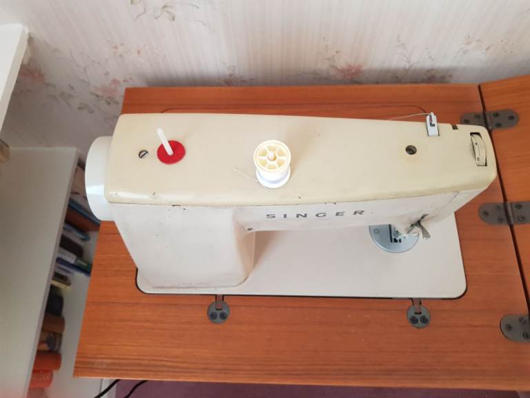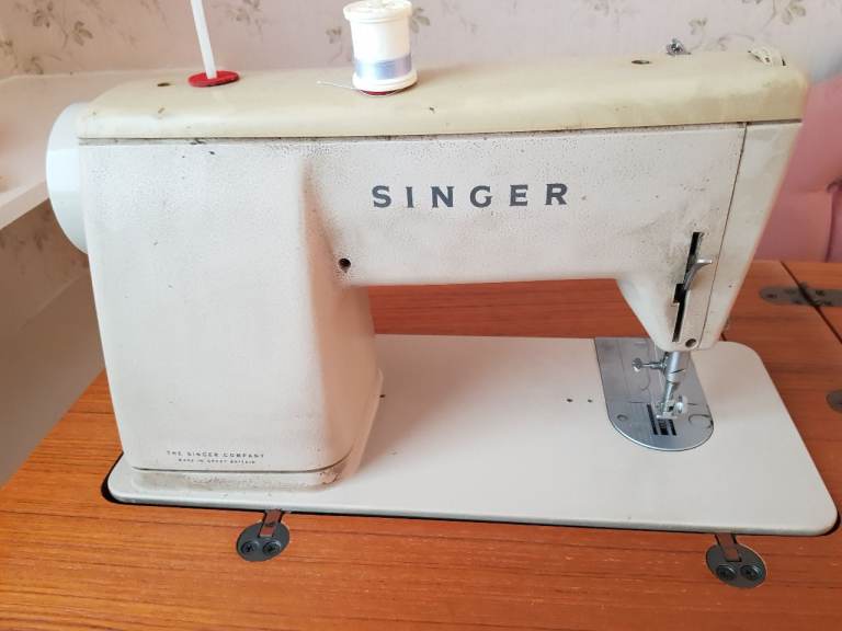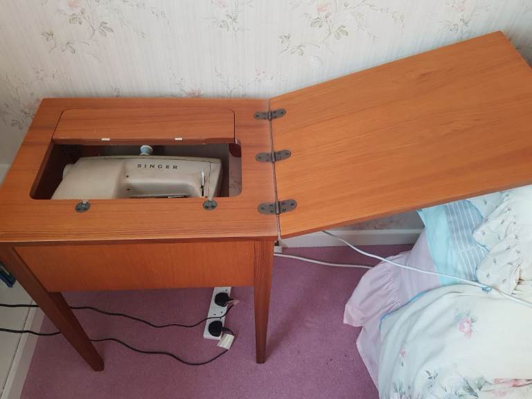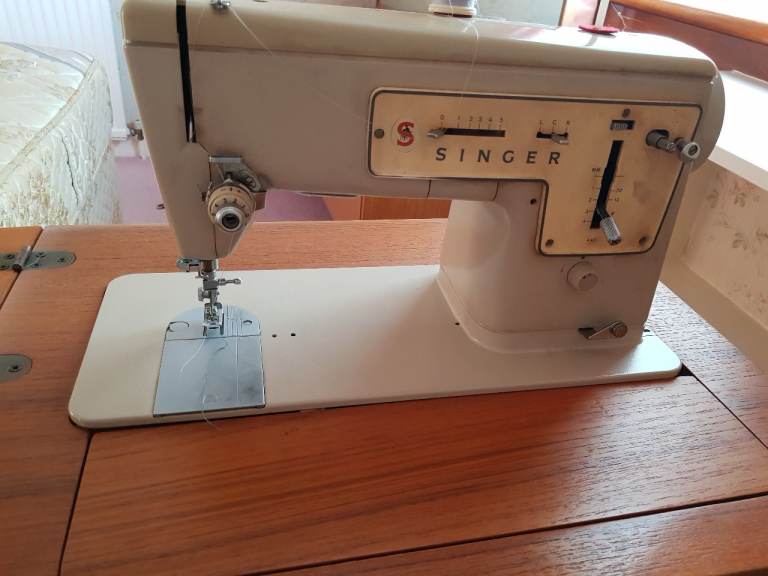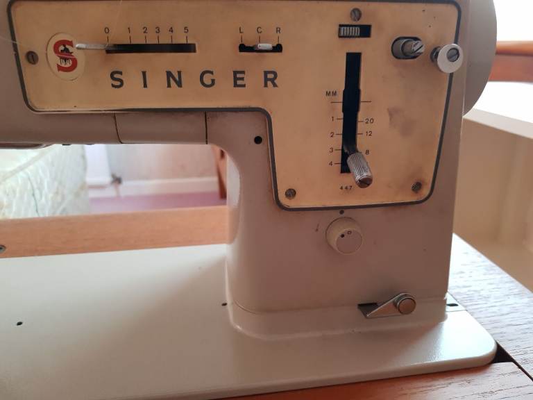 Vintage Singer 447 sewing machine set in solid teak and makes a nice piece of furniture when not in use. I only remember this being used about half a dozen times and that was decades ago so the machine will probably need oiling/service but I am not a sewer so may only require cleaning. Offers considered.