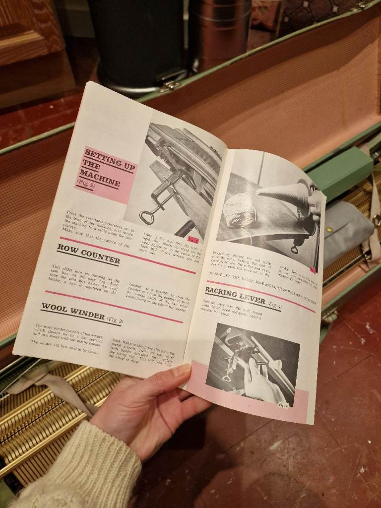 Vintage Singer Knitting Machine. Double bed. Comes with all relevant parts. In working order and with instruction booklet.