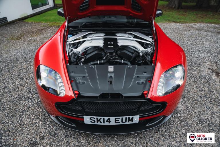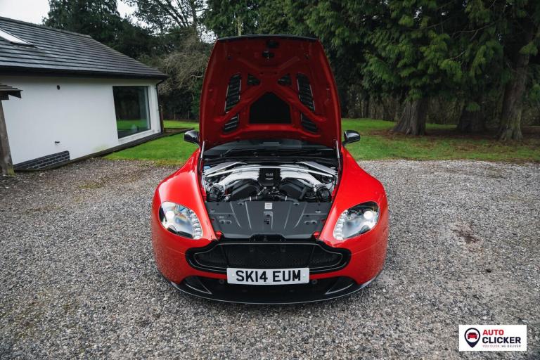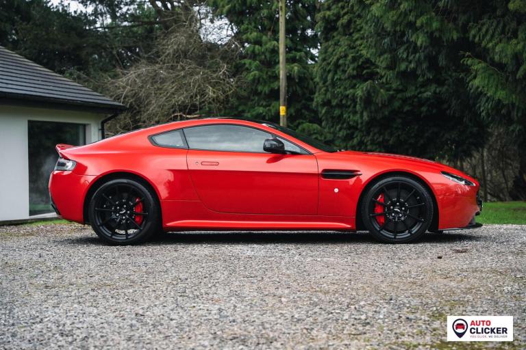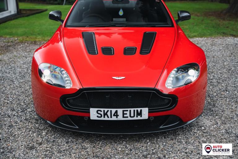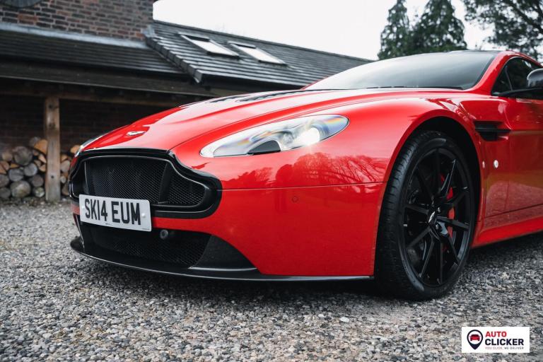 This 2014 Aston Martin V12 Vantage S is an exceptional, ultra-low mileage example showing just 5,000 miles, presented in a striking red finish with carbon-fibre highlights over a black leather interior with red stitching and detailing. Powered by the naturally aspirated 5.9-litre V12 producing 565 bhp and 457 lb-ft, it drives the rear wheels through the 7-speed Sportshift III automated manual gearbox with paddle shift, delivering 0–60 mph in just 3.6 seconds and a top speed of 204 mph. Specification includes carbon-ceramic brakes, forged 19-inch black 10-spoke alloy wheels with red calipers, adaptive damping, a quicker steering ratio, front and rear parking sensors, cruise control, climate control, electric memory seats, switchable sport mode, folding mirrors, and a pop-up infotainment screen with satellite navigation and Bluetooth. PPF was applied to the front end in June 2025, and it passed its most recent MOT on 16th October 2025 at 4,772 miles with a clean first-time pass. It also benefits from an excellent service record, as follows: Jun 2014 – PDI, May 2017 – 1,877 miles – Aston Martin Edinburgh, May 2017 – 2,648 miles – Aston Martin Edinburgh, Aug 2024 – 3,864 miles – Martin’s Aston Services, Jun 2025 – 4,341 miles – Aston Martin Cheltenham (engine oil and filter, brake fluid and coolant replaced). Supplied with service book and supporting invoices, this is a truly rare V12 Vantage S in superb condition, ideal for a collector or enthusiast looking for a refined yet brutally fast modern Aston Martin. Finance, delivery and part exchange available. We are a credit broker not a lender.