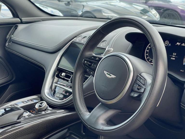 Harwoods Aston Martin are delighted to present this stunning DBX707 as part of our hand curated Timeless collection. Finished in Apex Grey Racing Line Metallic Paint over Titanium Grey Semi Aniline Leather with Electron Yellow and Light Argento Highlights, including a contrast Silver stitch and a Phantom Grey Carpet. The car has a full Aston Martin service history with the next complimentary service due in March 2026, and has covered just 24,285 miles. Full specification can be found below but highlights include the bespoke tri-tone interior with a generous amount of Gloss Carbon Fibre with heated and cooled seats front and rear and the exterior Carbon Fibre Upper Package.Aston Martin Premium AudioBlind Spot AssistancePower Tailgate With Gesture ControlBrake Calipers - YellowAston Martin Black Script and Wings BadgingDBX707 Gloss Black Lower PackageCarbon Pack Upper PackageCarbon Ceramic Brakes (CCB)Sports Exhaust UpgradeGloss Carbon Fibre Seat BacksGloss Black GrillPrivacy GlassHalo SpecSatin Silver Jewellery PackKeyless EntryDesigner Key SetPerimeter Camera SystemWireless Charger16 Way Seat AdjustSeatbelts - BlackVentilated Seats (Front And Rear)Headrest Embroidery - Aston Martin WingsWings Perf Seat InsertWings QuiltingSports Plus SeatSplit Rim Heated Steering WheelContrast StitchingSmoked Rear LampsTouchpadAston Martin TrackingInterior - Inspire Sport - DuotoneTyre Repair KitTyres - Summer22Inch Ribbon Satin Black AlloysAs part of the Aston Martin Timeless Certified Pre-Owned programme, this vehicle is supplied with 12 months Aston Martin warranty, 12 months roadside assistance, MOT test cover, and a full multi-point inspection carried out by trained Aston Martin technicians. Youll also receive verified provenance, mileage certification, and an invitation to become part of the exclusive Aston Martin ownership experience.Contact us today to arrange a personal appointment or request a bespoke video presentation. We look forward to welcoming you soon.