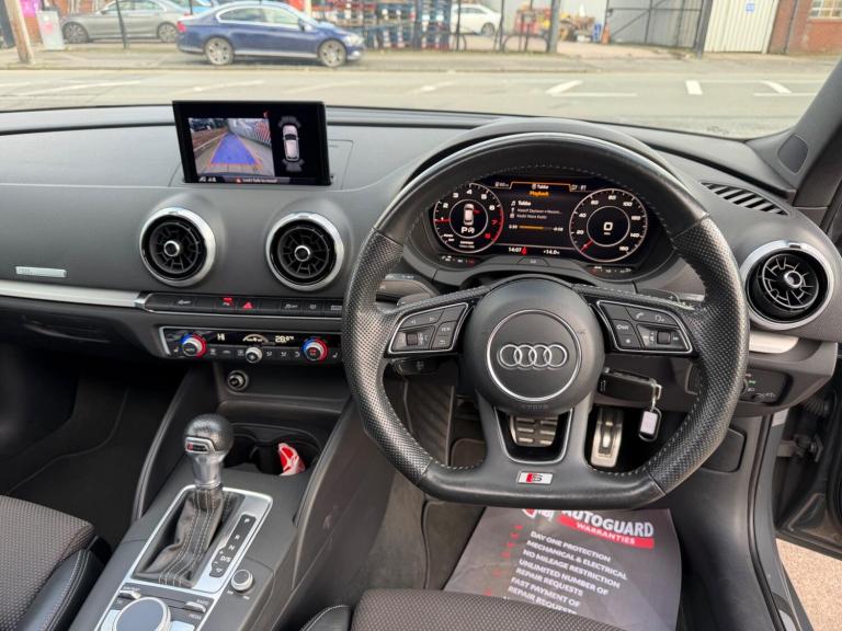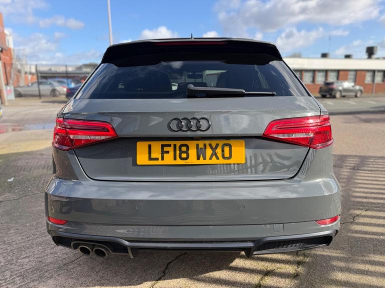 JUST ARRIVED INTO STOCK...A VEWRY HIGH SPEC AND DESIRABLE AUDI A3 BLACK EDITION. PANORAMIC SUNROOF, B&O SOUND, REVERSE CAMERA, HEATED SEATS, SAT NAV, DAB, CRUISE CONTROL, FRONT AND REAR PARKING SENSORS, ELECTRIC FOLD MIRRORS, BLACK PACK, FULL AUDI DEALER HISTORY, JUST SERVICED. FIND ANOTHER WITH THIS SPEC!! This 2018 Audi A3 TFSI Black Edition offers an impressive 57 miles per gallon, making it a highly economical choice. This Euro 6 compliant model features a 1.5 litre petrol engine and comes equipped with the desirable Black Edition trim. Notable features include a comprehensive Matrix LED Exterior Lighting Pack for enhanced visibility, an Audi Parking System Plus with front and rear sensors for effortless manoeuvring, and a panoramic glass sunroof that can be opened for an airy cabin experience. The Technology Pack adds convenience with Bluetooth connectivity and wireless phone charging, while heated front seats ensure comfort during colder journeys.This Audi A3 also boasts a generous boot space, perfect for luggage or shopping. Its acceleration from 0 to 62 miles per hour in just 8.2 seconds demonstrates its responsive performance. The low CO2 emissions further highlight its efficiency and environmental consideration, setting it apart from many other vehicles in its class.