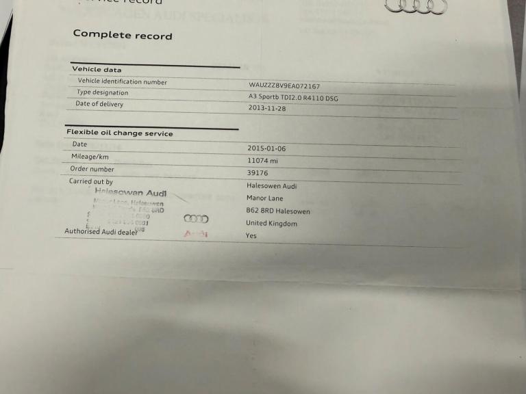 Posting for 2+ yearsAudi A3 2.0 TDI S line Sportback S Tronic Euro 5 (s/s) 5dr Diesel Automatic
