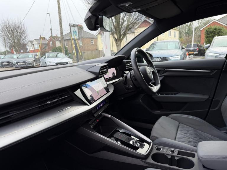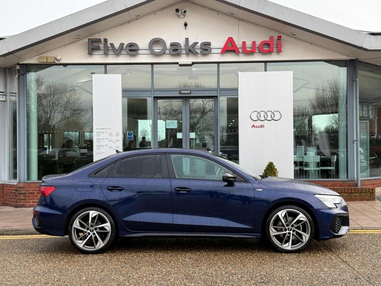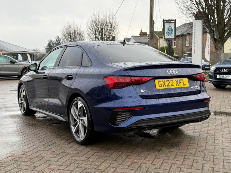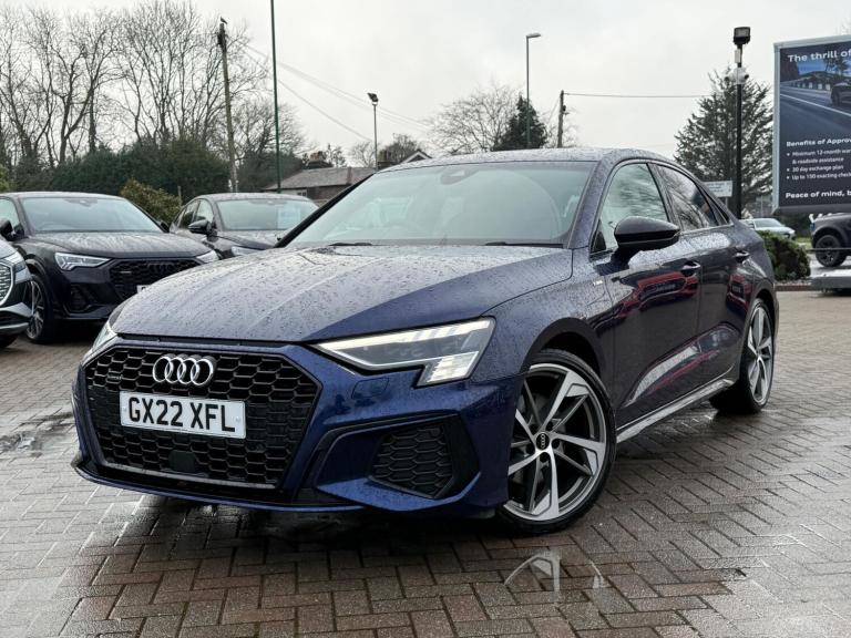 1 OWNER, SUPPLIED AND SERVICED WITH FULL AUDI HISTORY BY FIVE OAKS AUDI, SATELLITE NAVIGATION, MMI TOUCHSCREEN, AUDI VIRTUAL COCKPIT PLUS, BLUETOOTH CONNECTIVITY, DAB RADIO, AUDI SMARTPHONE INTERFACE WITH APPLE CARPLAY AND ANDROID AUTO, VOICE CONTROL, BANG & OLUFSEN PREMIUM SOUND SYSTEM, COMFORT AND SOUND PACK, DUAL ZONE CLIMATE CONTROL, STEEL GREY LEATHER/ALCANTRA WITH DIAMOND STITCHING UPHOLSTERY, HEATED FRONT SEATS, POWER FRONT SEATS WITH MEMORY FUNCTION, 40/20/40 SPLIT FOLDING REAR SEATS, FLAT BOTTOM LEATHER STEERING WHEEL, AMBIENT LIGHTING PACK, AUDI DRIVE SELECT, AUTO ELECTRIC PARKING BRAKE, POWER TAILGATE, MATRIX LED HEADLIGHTS, BLACK STYLING PACK, 19-INCH ALLOY WHEELS, PRIVACY GLASS, ELECTRICALLY FOLDING/HEATED WING MIRRORS, FRONT AND REAR PARKING SENSORS, PARKING AID PLUS, REVERSING CAMERA, ADAPTIVE CRUISE CONTROL (ON DEMAND) WITH SPEED LIMITER, LANE DEPARTURE WARNING, AUDI PRE SENSE, EMERGENCY SOS, SPACE SAVING SPARE WHEEL, QUATTRO, EURO 6, ULEZ.All Audi Approved used cars are offered with a 12-month warranty and roadside assistance.Five Oaks Audi are delighted to offer this 2022 Audi A3 Saloon Edition 1 40 TFSI quattro 190 PS S tronic in Navarra Blue over Steel Grey Leather/Alcantara with Diamond Stitching and has completed just 32,932 miles. We are proud to be part of the Harwoods group, a family run business established in 1931. With four Approved Audi retailers within our group, we have access to over 400 vehicles. If this isn't the right car for you, please contact us and we will find it.Also available, Saloon, Sportback, S line, Edition 1, Black Edition, Vorsprung and other colour options including Black, Blue, Silver, White, Red & Grey.