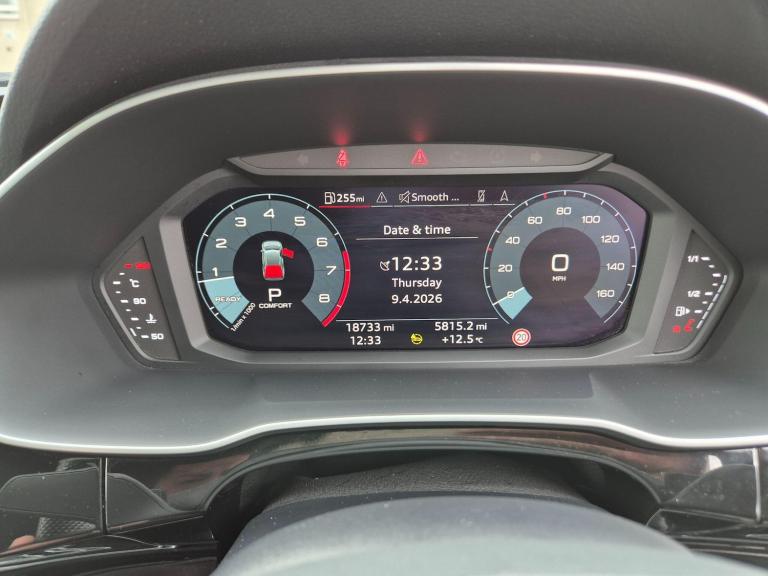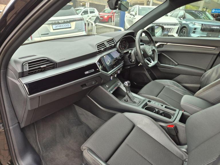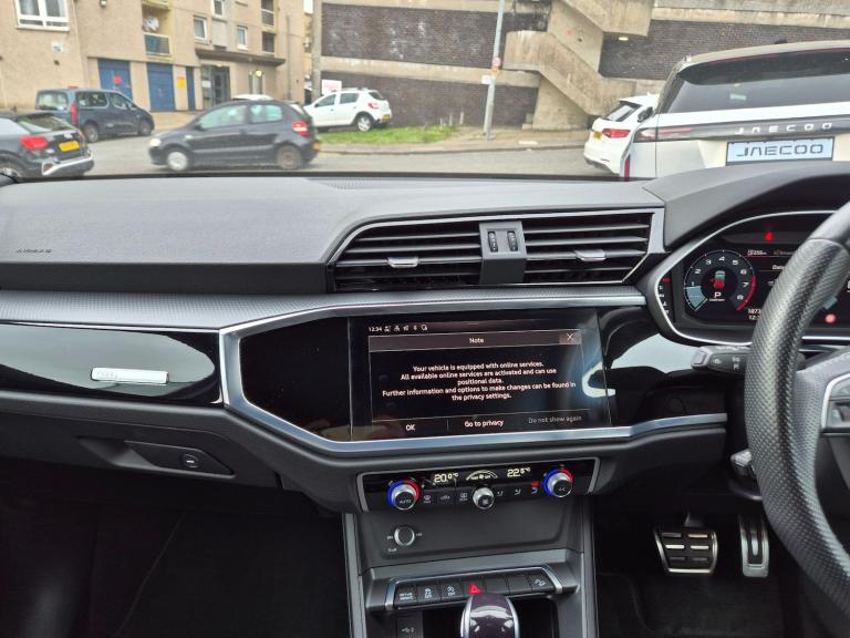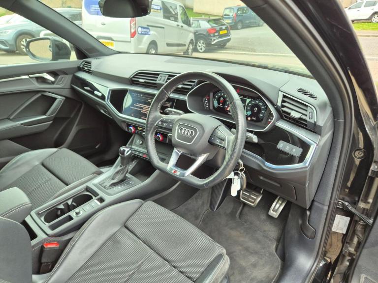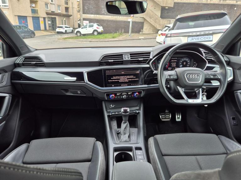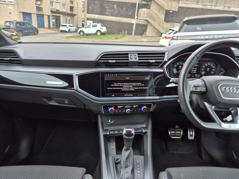 This 2022 Audi Q3 TFSI Black Edition boasts exceptionally low mileage for its year, having covered just 18,707 miles. This stylish SUV features a 1.5 litre Euro 6 petrol engine, offering a responsive drive with a 0-62mph time of 9.4 seconds. The Black Edition trim enhances its appeal with a host of desirable features, including LED headlights with distinctive LED daytime running lights and automatic activation thanks to light and rain sensors.Stay connected and entertained with the Audi Smartphone Interface, which seamlessly integrates your phone with Wireless Apple CarPlay and Android Auto. Parking is made easier with rear parking sensors, and the Bluetooth interface allows for convenient hands free calls and audio streaming. These features, combined with its impressive performance and low mileage, make this Audi Q3 a standout choice in its class.