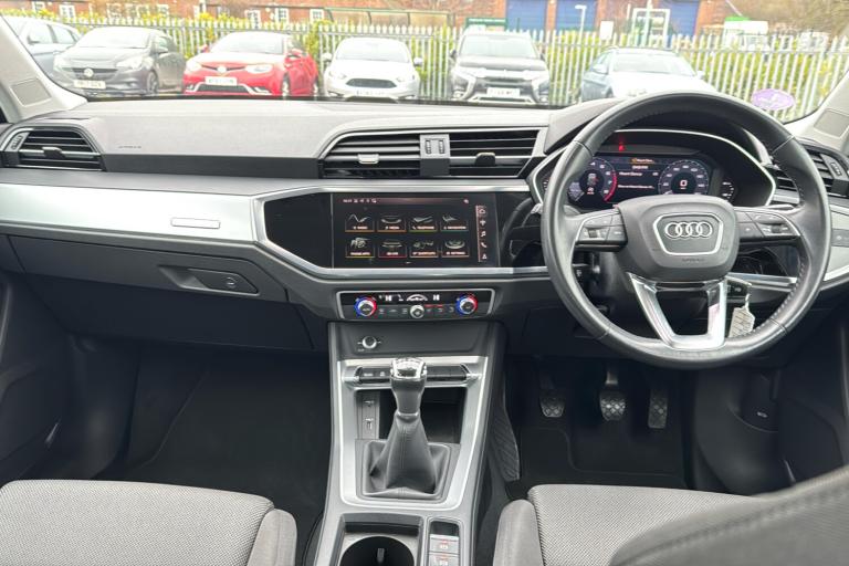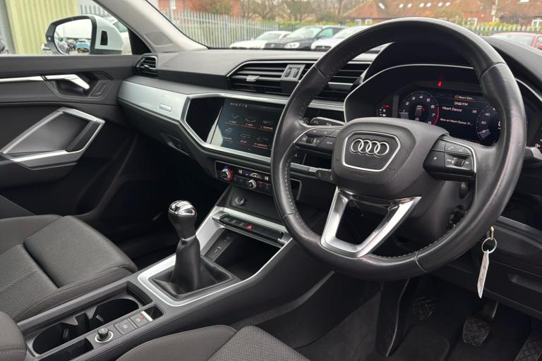 EMG Duxford are proud to offer this well-presented Audi Q3 1.5 TFSI 35 Sport finished in Glacier White Metallic and powered by Audi’s efficient and responsive 1.5-litre TFSI petrol engine with Cylinder on Demand CoD technology paired with a smooth manual gearbox.A premium compact SUV offering excellent comfort modern technology and strong everyday usability.This Audi Q3 has full Audi dealer service history having been last serviced at 31150 miles.? Key Features1.5 TFSI petrol engine with CoD Euro 6 ULEZ compliantManual transmission2019 69 36201 milesGlacier White Metallic exterior finishSport specification18 alloy wheelsLED headlightsFront & rear parking sensorsAudi MMI infotainment systemSatellite navigationApple CarPlay & Android AutoBluetooth phone & audio connectivityCruise control with speed limiterDual-zone climate controlAutomatic headlights & wipersElectric windows & mirrorsLeather-trimmed multifunction steering wheelISOFIX child-seat pointsSplit-folding rear seatsPractical well-sized boot? Optional Equipment – £1505 TotalElectrically adjustable front seats – £675Glacier White Metallic paint – £5754-way electric lumbar support – £255Sport seats with Index Cloth Black/Silver – £0? Ownership & Peace of Mind2 owners from newHPI clear & mileage verifiedMulti-point workshop inspection completedPart exchange welcomeFinance options availableThis Audi Q3 Sport offers premium build quality desirable factory options and low mileage — a superb value compact SUV with excellent comfort and efficiency.???? Available now at EMG Duxford???? Call 01223 801912 to arrange a viewing or reserve online today