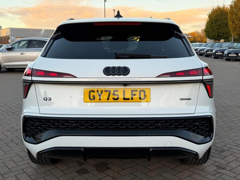 SATELLITE NAVIGATION, PANORAMIC MMI TOUCHSCREEN WITH AUDI VIRTUAL COCKPIT PLUS, HEAD-UP DISPLAY, BLUETOOTH CONNECTIVITY, AUDI APPLE CARPLAY & ANDROID AUTO, VOICE CONTROL, BANG & OLUFSEN PREMIUM 3D SOUND SYSTEM, SOUND AND VISION PACK PRO, WIRELESS PHONE CHARGING, 3 ZONE CLIMATE CONTROL, BLACK LEATHER/ALCANTRA UPHOLSTERY, POWER FRONT SEATS WITH MEMORY FUNCTION, HEATED FRONT SEATS, 40/20/40 SPLIT FOLDING REAR SEATS, HEATED FLAT TOP & BOTTOM STEERING WHEEL, AMBIENT LIGHTING PACK PRO, AUDI DRIVE SELECT, POWER TAILGATE WITH KICK FUNCTION, ACOUSTIC FRONT WINDOWS, MATRIX OLED HEADLIGHTS, BLACK STYLING PACK, RED BRAKE CALIPERS, 19-INCH ALLOY WHEELS, PRIVACY GLASS, ELECTRICALLY ADJUSTABLE FOLDING/HEATED/AUTO-DIMMING WING MIRRORS, 360 DEGREE CAMERA WITH 360 PARKING SENSORS & PARKING AID PLUS, ADAPTIVE CRUISE CONTROL, LANE DEPARTURE WARNING, SWERVE & TURN ASSIST, INTERSECTION ASSIST, CROSS TRAFFIC ASSIST, AUDI PRE SENSE, HILL HOLD ASSIST, EMERGENCY SOS, EURO 6, ULEZ .This car comes with the balance of the manufacturer’s warranty until 27/8/2027.Five Oaks Audi are delighted to offer this 2025 Audi Q3 SUV Launch Edition TFSI quattro 265 PS S tronic in Glacier White over Black Leather/Alcantara and has completed just 1,549 miles. We are proud to be part of the Harwoods group, a family run business established in 1931. With four Approved Audi retailers within our group, we have access to over 400 vehicles. If this isn't the right car for you, please contact us and we will find it.If this isn't the right car for you our Group stock has specification to include Sunroof, Reverse Camera, Rear Entertainment, Deployable Towbar, Comfort & Sound Pack, Tech Pack, Panoramic Sun Roof, Tow Bar, Black Pack, Air Suspension, Massage Seats, Refrigerator, AWD, Technology Pack, Head up Display, Vorsprung, Technik, Black Edition, S-Line, S Line, Edition 1, TFSI, Quattro, Sportback, LWB. Other colour options including Black, Blue, Green, Silver, White, Red, Grey, Yellow, Orange. Interior options of Ebony, Black, Ivory, White, Tan, Cream, Oyster, & Euro 6 ULEZ compliant drive trains.