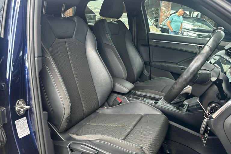 Discover the impressive Audi Q3 Sportback S Line finished in stunning blue. First registered in May 2022 and with just one previous keeper this SUV offers a sophisticated blend of sporty design and practicality. Its 1.5-litre petrol engine delivers 148 hp and a smooth automatic drive capable of reaching up to 126 mph while returning a combined 40.9 mpg. Inside you’ll find thoughtful details such as aluminium interior elements ambient lighting and privacy glass. Features like a 10.1-inch touchscreen with navigation wireless Apple CarPlay and the Audi Virtual Cockpit enhance every journey. With a generous 530-litre boot expanding to 1400 litres practicality is always at hand. Safety is supported by innovations including Audi Pre-Sense and lane departure warning. This model is ULEZ compliant making it ready for city driving and beyond. Experience refined comfort and striking presence with the Audi Q3 Sportback S Line.