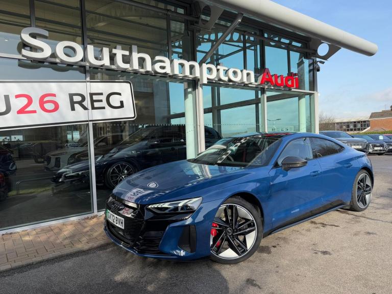 FULL AUDI SERVICE HISTORY, BANG & OLUFSEN PREMIUM SOUND SYSTEM, 360 CAMERA, CAMERA- BASED TRAFFIC SIGN SYSTEM, CARBON ROOF, NIGHT VISION ASSIST, HEAD- UP DISPLAY, HEATED SEATS FRONT AND REAR, MASSAGE FRONT SEATS, COOLED FRONT SEATS, 21”ALLOY WHEELS 5-SPOKE BLACK WITH GRAPHIC PRINT, AUDI DRIVE SELECT, AUDI PHONE BOX WITH WIRELESS CHARGING, AUDI SMARTPHONE INTERFACE WITH WIRELESS FUNCTIONALITY, AUDI VIRTUAL COCKPIT, LANE DEPARTURE WARNING SYSTEM, MMI NAVIGATION PLUS WITH MMI TOUCH + TWIN TOUCH SCREENS WITH HAPTIC FEEDBACK, POWER OPERATED TAILGATE, ELECTRICALLY ADJ HEATED/FOLDING + AUTOMATICALLY DIMMING EXTERIOR MIRRORS WITH MEMORY + AUTOMATIC KERB SIDE FUNCTION FOR PASSENGER SIDE EXTERIOR MIRROR, FIXED PANORAMIC GLASS ROOF, HEAT PUMP, ISOFIX AND I-SIZE CHILD SEAT MOUNTING WITH TOP TETHER FOR THE OUTER REAR SEATS, RS DESIGN PACK - E-TRON GT. ALL AUDI APPROVED USED CARS ARE OFFERED WITH A 12-MONTH WARRANTY AND ROADSIDE ASSISTANCE. AUDI SOUTHAMPTON ARE DELIGHTED TO OFFER THIS AUDI RS E-TRON GT 93.4KWH CARBON VORSPRUNG SALOON 4DR ELECTRIC AUTO QUATTRO (598 PS) IN BLUE WITH 29,230 MILES. WE ARE, PROUD TO BE PART OF THE HARWOODS GROUP, A FAMILY RUN BUSINESS ESTABLISHED IN 1931. WITH FOUR APPROVED AUDI RETAILERS WITHIN OUR GROUP, WE HAVE ACCESS TO OVER 400 VEHICLES. IF THIS ISN'T THE RIGHT CAR FOR YOU OUR GROUP STOCK HAS SPECIFICATION TO INCLUDE SUNROOF, LEATHER, HEATED SEATS, APPLE CAR PLAY, HEATED STEERING WHEEL, REVERSE CAMERA, REAR ENTERTAINMENT, TOWBAR, 360-DEGREE CAMERA, COMFORT & SOUND PACK, TECH PACK, PANORAMIC SUN ROOF, TOW BAR, BLACK PACK, AIR SUSPENSION, APPLE CARPLAY, ADAPTIVE CRUISE, MASSAGE SEATS, REFRIGERATOR, AWD, TECHNOLOGY PACK, HEAD UP DISPLAY, VORSPRUNG, TECHNIK, BLACK EDITION, S-LINE, S LINE, EDITION 1, TFSI, QUATTRO, SPORTBACK, LWB.? OTHER COLOUR OPTIONS INCLUDING BLACK, BLUE, GREEN, SILVER, WHITE, RED, GREY, YELLOW, ORANGE. INTERIOR OPTIONS OF EBONY, BLACK, IVORY, WHITE, TAN, CREAM, OYSTER, & EURO 6 ULEZ COMPLIANT DRIVE TRAINS.?