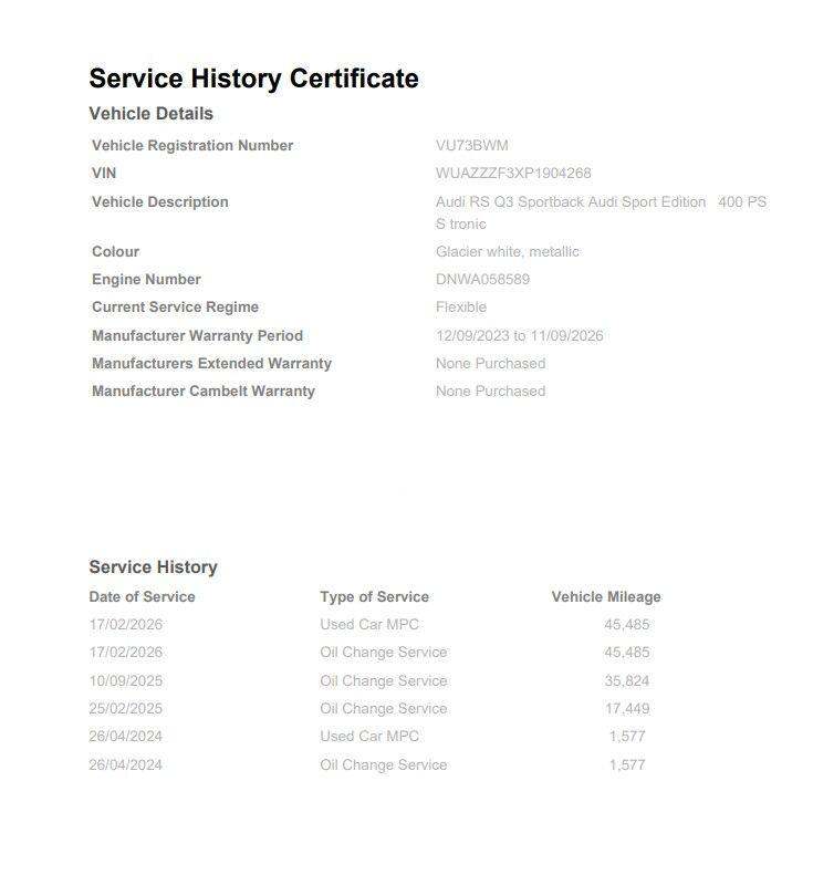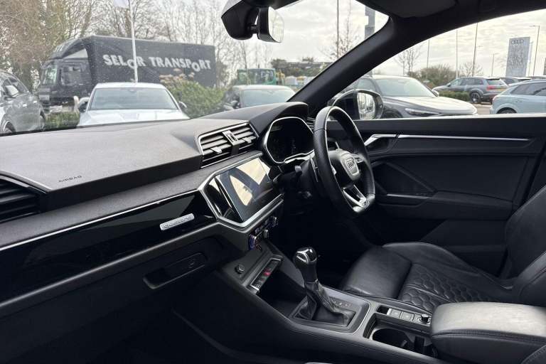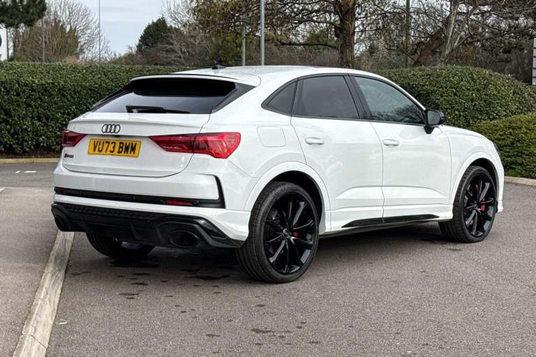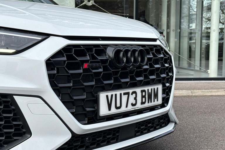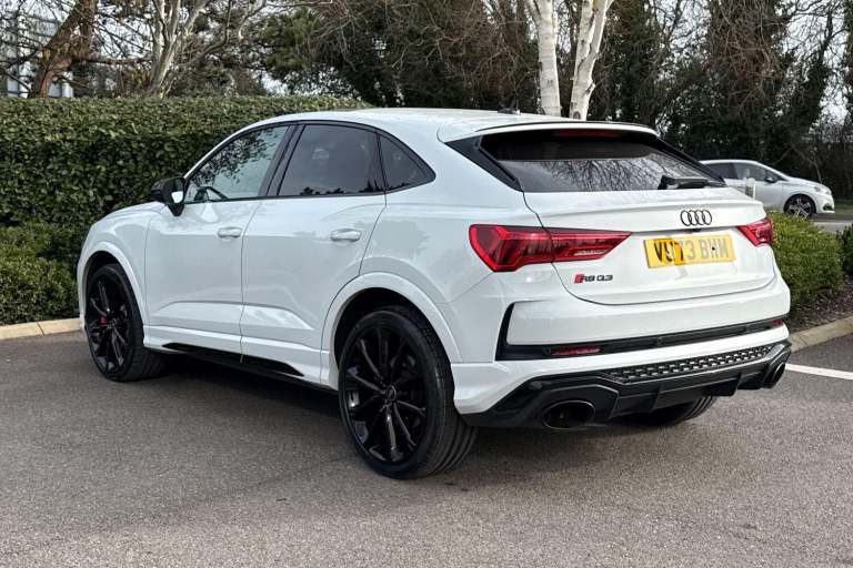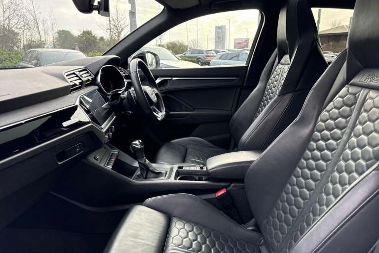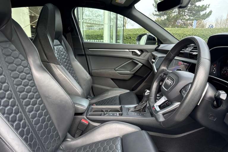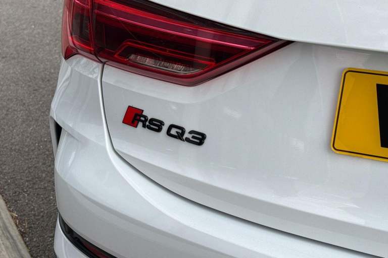 AUDI SPORT EDITION ( RS SPORT EXHAUST SYSTEM, PANORAMIC GLASS SUNROOF, PIANO BLACK INLAYS, BLACK FRONT SPOILER, BLACK STYLING PACK ) SATELLITE NAVIGATION, COMFORT & SOUND PACK ( REAR PARKING CAMERA, AMBIENT LIGHTING MULTI COLOURED, SONOS 3D SOUND SYSTEM ) RED BRAKE CALIPERS, ADVANCED KEY, HIGH BEAM ASSIST, AUDI PRE SENSE BASIC, CAMERA BASED TRAFFIC SIGN RECOGNITION, ANTI THEFT ALARM, MULTI FUNCTION STEERING WHEEL, HILL HOLD ASSIST, CRUISE CONTROL, AUDI VIRTUAL COCKPIT, LANE DEPARTURE WARNING, APPLE CARPLAY, ANDROID AUTO, DAB RADIO, TINTED WINDOWS - PRIVACY GLASS, FRONT AND REAR PARKING SENSORS, SPLIT FOLDING REAR SEATS, LIGHT & RAIN SENSOR, AUTO DIMMING REAR VIEW MIRROR, SELECTABLE DRIVING MODES, PUSH BUTTON START, GLACIER WHITE METALLIC WITH LEATHER UPHOLSTERY, 21'' POLYGON BLACK ALLOY WHEELS, DUAL ZONE CLIMATE CONTROL, POWERED/HEATED FRONT SEATS WITH LUMBAR SUPPORT, DARKENED MATRIX LED HEADLIGHTS WITH DYNAMIC REAR INDICATORS, VOICE ACTIVATED CONTROLS AND MUCH MORE.All Audi Approved used cars are offered with a 12-month warranty and roadside assistance.This car comes with the balance of the manufacturer’s warranty until 11/9/2026.Portsmouth Audi are delighted to offer this Audi RSQ3 in Glacier white over Leather and has completed just 45487 miles., We are proud to be part of the Harwoods group, a family run business established in 1931. With four Approved Audi retailers within our group, we have access to over 400 vehicles. If this isn't the right car for you, please contact us and we will find it. Our group stock has spec to include Sunroof, Leather, Heated Seats, Apple Car Play, Heated Steering Wheel, Reverse Camera, Rear Entertainment, Towbar, 360-degree camera, Comfort & Sound Pack, Tech Pack, Panoramic Sun Roof, Tow Bar, Black Pack, Air Suspension, Apple Carplay, Adaptive Cruise, Massage Seats, Refrigerator, AWD, Technology Pack, Head up Display, Vorsprung, Technik, Black Edition, S-Line, S Line, Edition 1, TFSI, Quattro, Sportback, LWB.