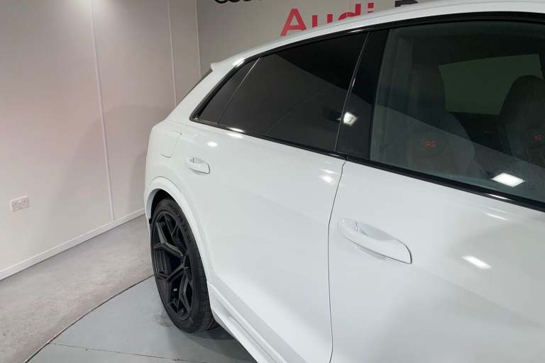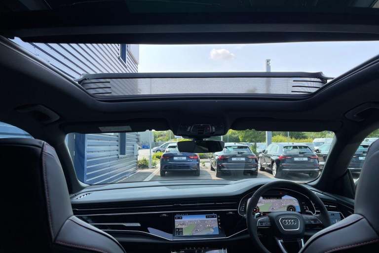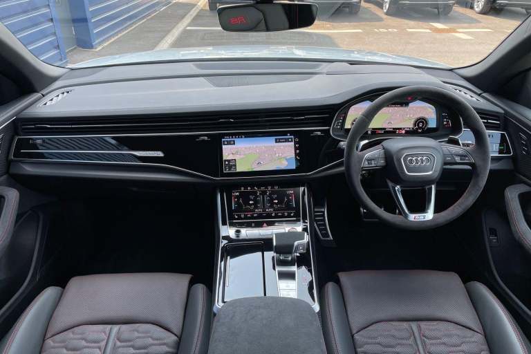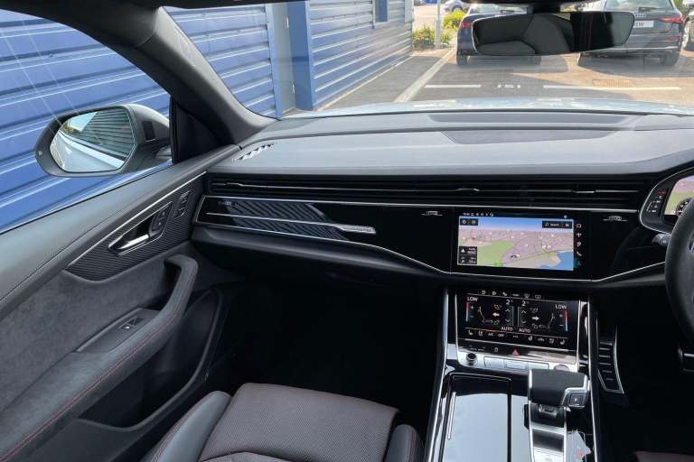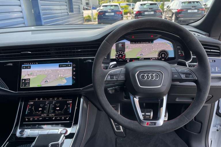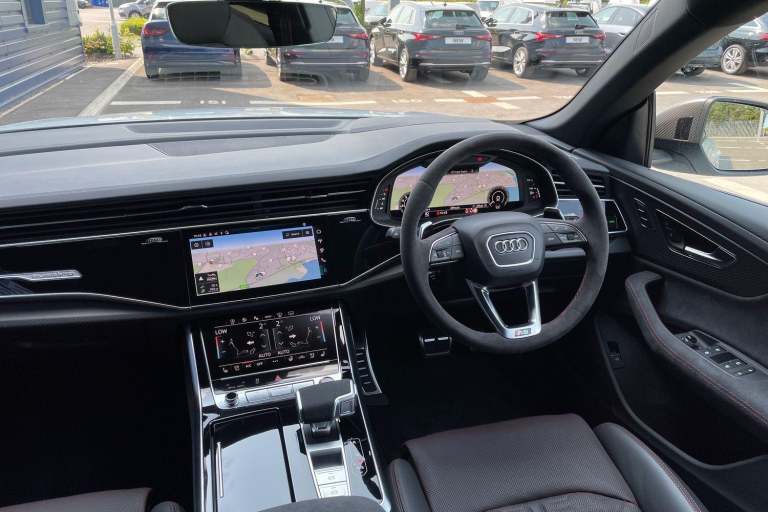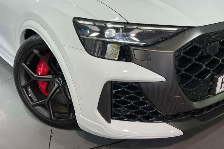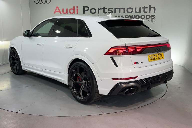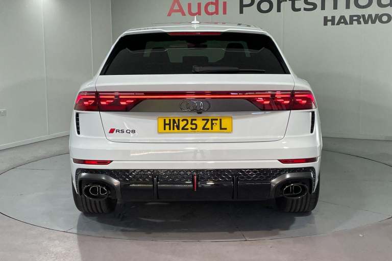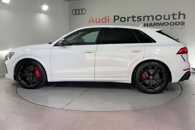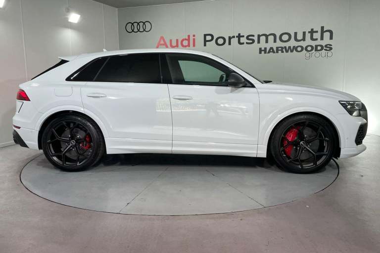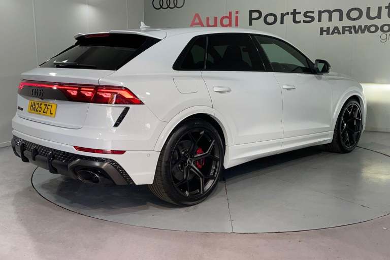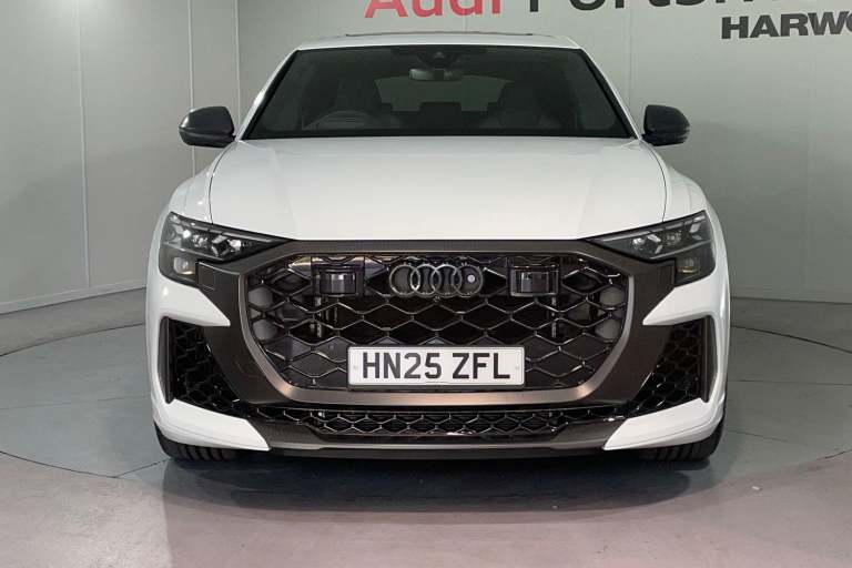 EQUIPMENT PACKAGE ( PANORAMIC GLASS SUNROOF, POWER DOOR CLOSURE, FRONT SPOILER ELEMENTS IN CARBON, SINGLEFRAME MASK IN CARBON, DIGITAL OLED REAR LIGHTS, BLACK APPERANCE PACKAGE PLUS, USB PORTS IN REAR, NIGHT VISION ASSISTANT, HEATED FRONT & REAR SEATS ) CITY ASSIST PACK ( AUDI PRE SENSE FRONT, MULTI FUNCTION CAMERA, AUDI PRE SENSE REAR, FRONT CROSS TRAFFIC ASSIST, SIDE ASSIST ) RS DESIGN PACK PLUS (RED) UPPER PART OF INSTRUMENT PANEL IN LEATHER & LOWER ELEMENTS WITH CONTROLS IN DINAMICA MICROFIBRE, BLACK SEAT BELTS WITH RED EDGE, FLOOR MATS WITHRS LOGO, RS CERAMIC BRAKES WITH RED CALIPERS, MATTE CARBON TWILL INLAYS, PARK ASSIST PACK WITH REMOTE PARK ASSIT PLUS, 360 CAMERA, REMOTE PARK ASSIST PLUS, TOUR PACK, ADAPTIVE CRUISE CONTROL, SATELLITE NAVIGATION, MULTI FUNCTION STEERING WHEEL, HILL HOLD ASSIST, CRUISE CONTROL, AUDI VIRTUAL COCKPIT, LANE DEPARTURE WARNING, WIRELESS PHONE CHARGER, APPLE CARPLAY, ANDROID AUTO, DAB RADIO, SPLIT FOLDING REAR SEATS, LIGHT & RAIN SENSOR, AUTO DIMMING REAR VIEW MIRROR, SELECTABLE DRIVING MODES, KEYLESS ENTRY WITH PUSH BUTTON START, MYTHOS BLACK METALLIC WITH LEATHER UPHOLSTERY, 23'' 5 Y SPOKE ALLOY WHEELS, DUAL ZONE CLIMATE CONTROL, POWERED/HEATED FRONT SEATS WITH DRIVER’S SEAT MEMORY AND LUMBAR SUPPORT, LED HEADLIGHTS WITH DYNAMIC REAR INDICATORS, VOICE ACTIVATED CONTROLS AND MUCH MORE.All Audi Approved used cars are offered with a 12-month warranty and roadside assistance.This car comes with the balance of the manufacturer’s warranty until 30/5/2028.Portsmouth Audi are delighted to offer this Audi RSQ8 in Glacier white over Black Nappa Leather and has completed just 1001 miles., We are proud to be part of the Harwoods group, a family run business established in 1931. With four Approved Audi retailers within our group, we have access to over 400 vehicles. If this isn't the right car for you, please contact us and we will find it.Also available, Sportback, Quattro, S Line, Edition 1, Black Edition, Vorsprung and other colour options including Black, Blue, Silver, White, Red & Grey.