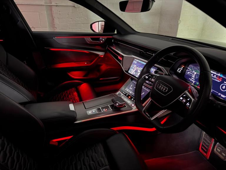 THIS STUNNING 2020 AUDI RS6 LAUNCH EDITION FINISHED IN NAVARRA BLUE METALLIC IS PRESENTED IN SUPERB CONDITION COMPLETE WITH FULL AUDI SERVICE HISTORY AND SUPPLIED WITH BOTH ORIGINAL KEYS. HUGE SPECIFICATION INCLUDING FULL MAXTON BODY STYLING, PANORAMIC GLASS SUNROOF, HEATED SUPER SPORT SEATS, REAR WHEEL STEERING, SPORTS EXHAUST, ADAPTIVE AIR SUSPENSION, BANG AND OLUSFEN SOUND SYSTEM, INCREASED TOP SPEED, AUDI MATRIX LED HEADLIGHTS, APPLE CAR PLAY, SELF PARKING, SPORTS DIFFERENTIAL, AMBIENT LIGHTING AND ALL USUAL RS6 LAUNCH EDITION REFINEMENTS
