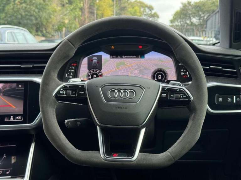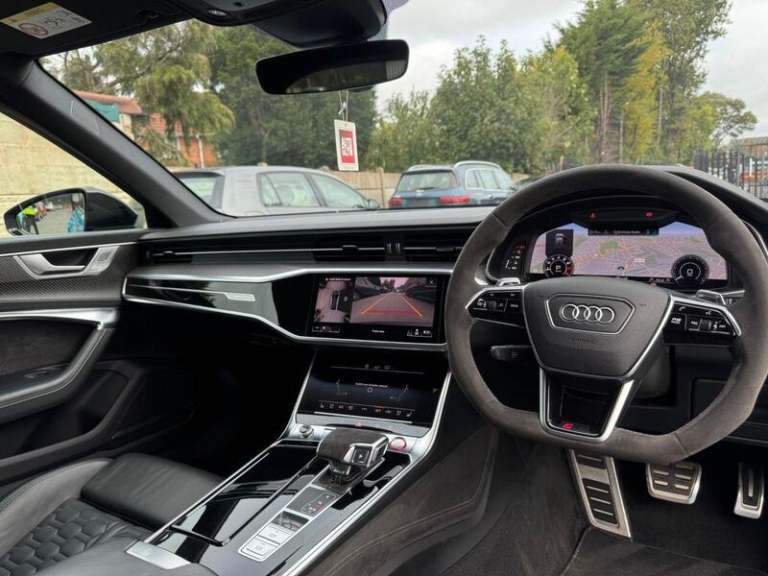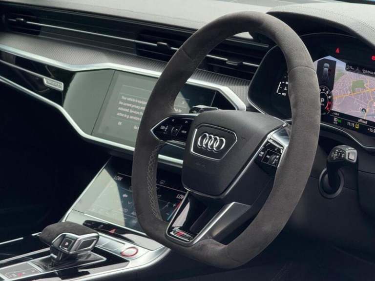Amazon Alexa Integration - Part of Connect Navigation and Information Plus, AMI - Audi Music Interface, Audi Connect (3 Year Subscription From New), Audi Connect Safety and Service - e-call, Audi Phone Box with Wireless Charging, Audi Smartphone Interface, Audi Sound System, Bluetooth Interface, DAB Digital Radio, MMI Navigation with MMI Touch, Tow Bar Preparation, Audi Drive Select with Efficiency, Audi Virtual Cockpit with RS Specific Design and 12.3in Display, Camera Based Traffic Sign Recognition, Cruise Control System with Speed Limiter, Direct Tyre Pressure Monitoring System, Lane Departure Warning, Rear View Camera, Voice Control System, 22in Alloy Wheels - Black Gloss Turned Finish, Black Mirror Housings, Carbon Black Styling Pack, Electric Windows - Front, Exterior Mirrors - Electrically Folding - Adjustable and Heated with Integrated LED Side Indicators and Kerb View Function for Passenger Side, Privacy Glass in Side and Rear Windows - Acoustic Glazing for Side Windows, Radiator Grille in Honeycomb Structure - Gloss Black with Large Front Air Inlets and Rear Diffuser in Gloss Black, RS Rear Spoiler in Body Colour, RS Specific Front and Rear Bumpers, Wheel Arch Extensions, Window Trims in Matt Aluminium, Audi Sport Logo Projection - Audi Beam - Front and Rear, HD Matrix LED Headlamps with Audi Laser Light with Dynamic Light Design and Dynamic Turn Signal, Headlight Washers, LED Rear Combination Lamps with Dynamic Light Design and Dynamic Turn Signal, 3-Spoke Design Multifunction Steering Wheel in Alcantara Leather, 4-Way Electric Lumbar Support, 4-Zone Deluxe Automatic Climate Control, Air Quality Pack, Auto Dimming and Frameless Rear View Mirror, Black Cloth Headlining, Electric Steering Column Adjustment, Electrically Adjustable Front Seats with Driver Memory Function, Extended LED Interior Lighting Package - Multi-Coloured, Front and Rear Floor Mats, Front Centre Armrest, Front Seat Ventilation, Heated Front Seats, Inlays - Carbon Twill, Keyless Go, Leatherette Upper Instrument Panel and Door Shoulders, Operating Buttons in Black - Glass Look with Haptic Feedback, Pedals and Footrest - Stainless Steel, Power-Operated Tailgate, RS Design Package - Grey, RS Illuminated Door Sill Trims with RS Lettering, RS Sports Seats, Shift Paddles in Aluminium, Storage Package, Dynamic All-Wheel Steering, quattro with Sports Differential, RS Steel Brakes with Black Calipers, RS-Air Suspension - 4 Corner - with Electronic Shock Absorption Control - Sports Version, ABS - Anti-Lock Braking System, Airbags - Driver, Anti-Theft Alarm with Tow-Away Protection, Audi Pre-Sense Front, Electromechanical Parking Brake, Extended Pedestrian Protection Measures, First Aid Kit and Warning Triangle, Front and Rear Side Airbags with Head Airbag System, ISOFIX Child Seat Mounting and Top Tether - Front Passenger Airbag Deactivation.