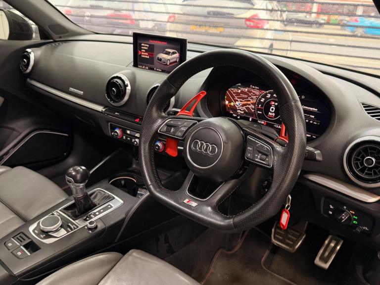 UK Motor Sales is excited to present another AUDI S3 Finished in Black. ** COMES WITH A NEW MOT** SERVICE HISTORY ** HPI CLEAR - Report available ** 3 MONTHS UPTO 12 Months WARRANTY Available** INSPECTION & SERVICE CARRIED OUT ** ULEZ COMPLIANT ** OPEN 7 DAYS A WEEK ** P/X CONSIDERED** LIVE VIDEO VIEWING** NATIONWIDE DELIVERY***Features include freshly powder coated 18-inch Alloy Wheels, Virtual Cockpit, Bang and Olufsen sound system, Heated front seats, Panoramic Sunroof, Cruise Control, Air Conditioning, Front and Rear Electric Windows, Bluetooth, Multi-Function Steering Wheel, Grey Leather, Cup Holders, Folding Rear Seats, Start/Stop Button, Fog Lights, Isofix, Daytime Running Lights, and Remote Central Locking.