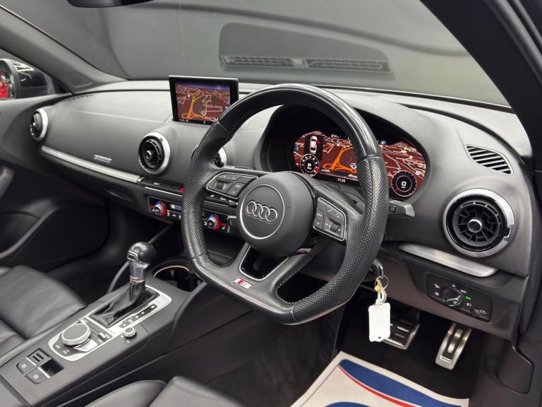 Here at Motor Gurus we are delighted to offer a Audi S3 2.0 TFSI S Tronic quattro. This vehicle is in immaculate condition inside and out. This specific vehicle is finished in a METALLIC GREY and is contrasted by a BLACK LEATHER interior. This vehicle comes included with: REAR PARKING SENSORS, PRIVACY GLASS, SLIDING GLASS PANORAMIC ROOF, HEATED SIDE MIRRORS, FRONT HEATED SEATS, PERFORATED GRIPPED LEATHER STEERING WHEEL, CRUISE CONTROL, AUTOMATIC HEADLIGHTS, DIGITAL COCKPIT, AUTO HOLD, TWIN CUPHOLDERS, DRIVING MODES, CLIMATE CONTROL, SAT NAVIGATION, DAB RADIO, BLUETOOTH AUDIO, TELEPHONE CONNECTIVITY, APPLE CARPLAY, TYRE PRESSURE MONITORING AND MUCH MORE! We will also provide this vehicle with a 12 MONTH MOT and a FRESH OIL SERVICE before it leaves our premises (OTR).