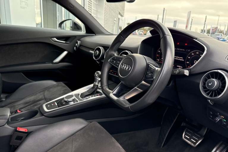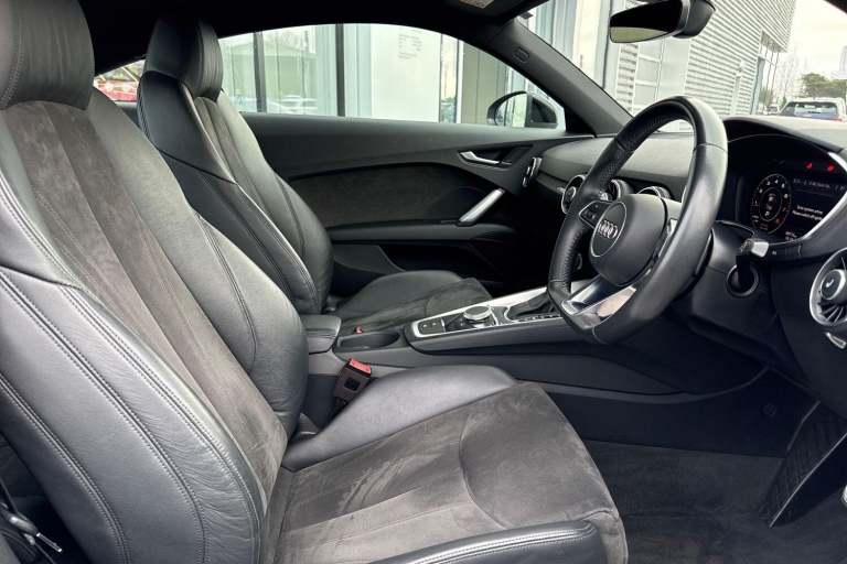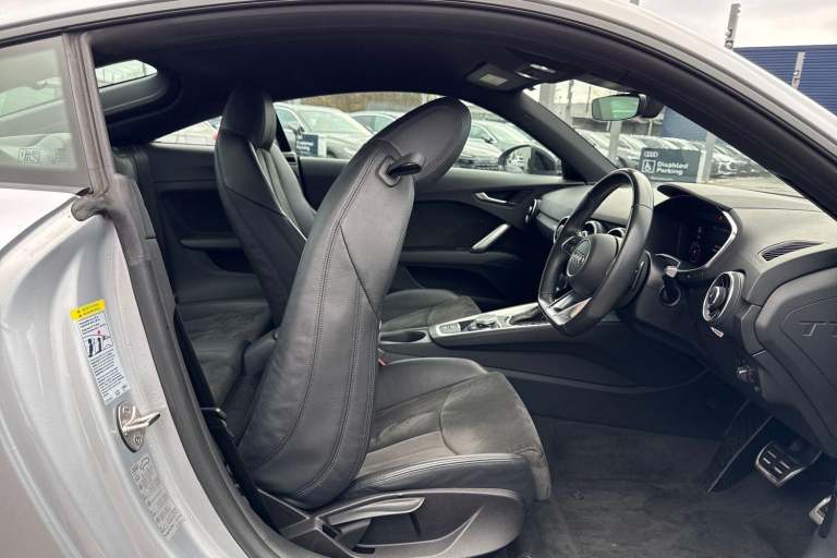 TECHNOLOGY PACK ( INPUT MEDUIM FOR MULTI MEDIA, AUDI CONNECT, MMI NAVIGATION PLUS, AUDI PHONE BOX/WIRELESS CHARGE ) BLACK STYLING PACKAGE, MULTI FUNCTION STEERING WHEEL, HILL HOLD ASSIST, CRUISE CONTROL, AUDI VIRTUAL COCKPIT, LANE DEPARTURE WARNING, APPLE CARPLAY, ANDROID AUTO, DAB RADIO, FRONT AND REAR PARKING SENSORS, SPLIT FOLDING REAR SEATS, LIGHT & RAIN SENSOR, AUTO DIMMING REAR VIEW MIRROR, SELECTABLE DRIVING MODES, PUSH BUTTON START, FLORET SILVER METALLIC WITH LEATHER/ALCANTARA UPHOLSTERY, 19'' 5 SPOKE DIAMOND CUT ALLOY WHEELS, DUAL ZONE CLIMATE CONTROL, HEATED FRONT SEATS, LED HEADLIGHTS WITH DYNAMIC REAR INDICATORS, VOICE ACTIVATED CONTROLS AND MUCH MORE.All Audi Approved used cars are offered with a 12-month warranty and roadside assistance.Portsmouth Audi are delighted to offer this Audi TT in Floret silver over Alcantara/ Leather and has completed just 49711 miles., We are proud to be part of the Harwoods group, a family run business established in 1931. With four Approved Audi retailers within our group, we have access to over 400 vehicles. If this isn't the right car for you, please contact us and we will find it. Our group stock has spec to include Sunroof, Leather, Heated Seats, Apple Car Play, Heated Steering Wheel, Reverse Camera, Rear Entertainment, Towbar, 360-degree camera, Comfort & Sound Pack, Tech Pack, Panoramic Sun Roof, Tow Bar, Black Pack, Air Suspension, Apple Carplay, Adaptive Cruise, Massage Seats, Refrigerator, AWD, Technology Pack, Head up Display, Vorsprung, Technik, Black Edition, S-Line, S Line, Edition 1, TFSI, Quattro, Sportback, LWB. Other colour options including Black, Blue, Green, Silver, White, Red, Grey, Yellow, Orange. Interior options of Ebony, Black, Ivory, White, Tan, Cream, Oyster, & Euro 6 ULEZ compliant drive trains.
