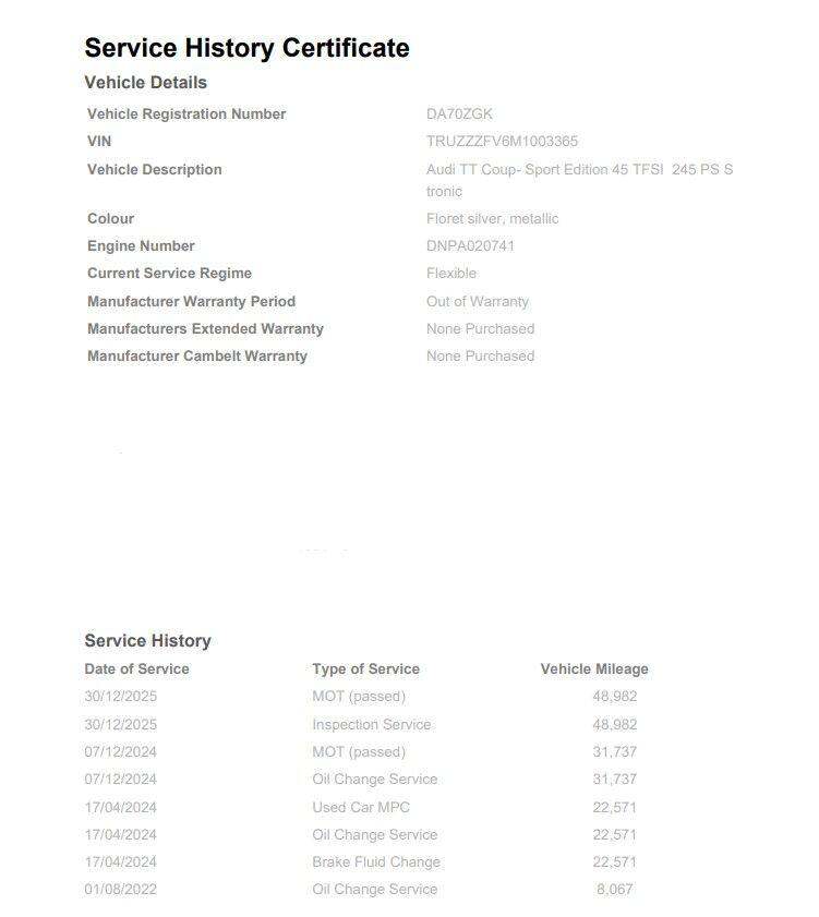 Posting for 1+ yearsAudi TT 2.0 TFSI 45 Sport Edition Coupe 3dr Petrol S Tronic Euro 6 (s/s) (245 ps) Petrol Automatic
