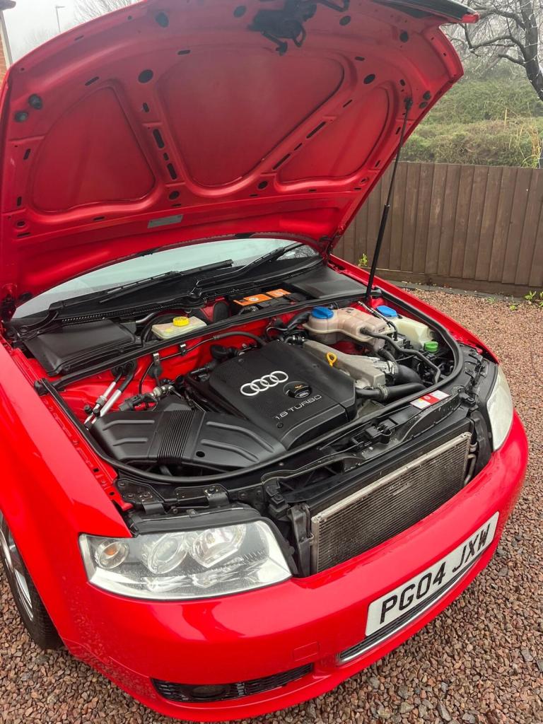 6/ 7/ 2004 saw this Audi commissioned to the road with an ''Ultra Sports Pack'' This is early take on the precursor to 'S'Line stying, Enhanced front and rear bumpers and all important subtle rear tip spoiler along with side skirting all color keyed in fantastic Audi Red, 9 Spoke 17 inch unmarked alloys compliment the look as do the pair of factory standard rear tail pipes depicting the 163bhp 1. 8 Turbo Charged Engine, So the life story of PG04JXW sat today at 88699 miles and complimenting 2 x Block Keys, Original Book Pack, Service book with supply data and 12 service stamps last at 87300 in July 2025, Current MOT to 22nd July 2026, A Standard interior with Audi Concert Sounds, A vehicle that has never seen a cigarette inside it, as for its external condition i have a 3min 37second video i can send you of the walk around, But satisfy yourself from the images of the condition of this car, Yes its not a Ford Cosworth or Japanese performance but nor is its ticket price, This is a unassuming piece of German car making that could make part of a collection or used and enjoyed as a daily, I make no excuses for it and i will sell it to the first to secure it and hope it remains to be loved and cherished as it has been in its life thus far.Free Delivery within reason anywhere in the UK, You don't even have to visit us, We send you a mini video walk around and a short drive, We show and declare all body, Wheels, Tyres, Glass, Interior Condition We image all paperwork, Once your satisfied you pay the balance and we deliver the vehicle to your address, Its Budget car buying made simple.