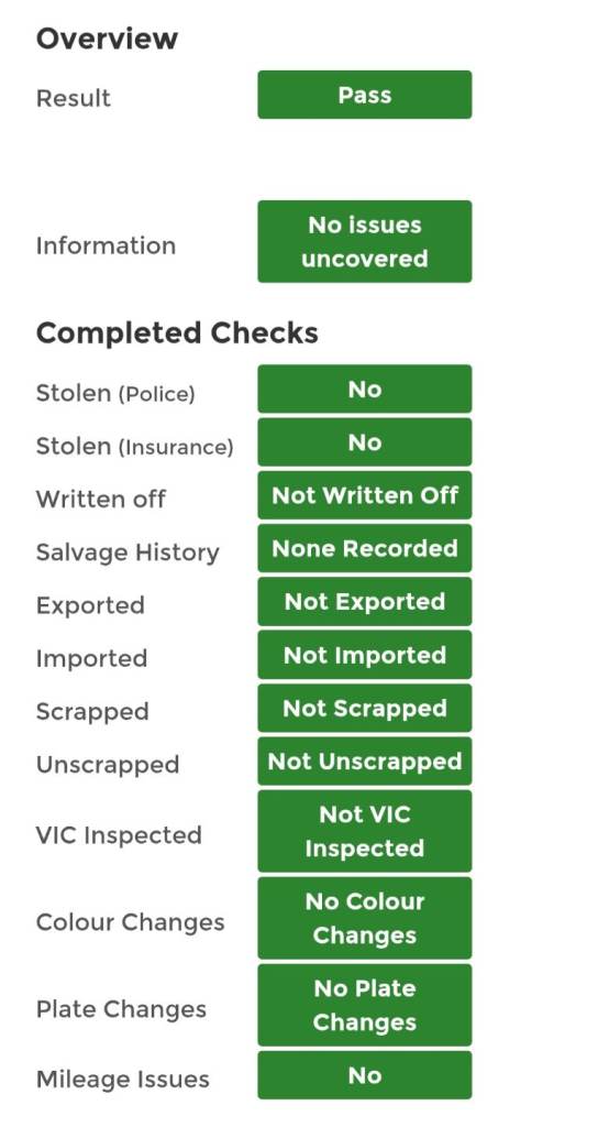 This vehicle has not been reported stolen, scrapped, exported or flagged as unroadworthy.