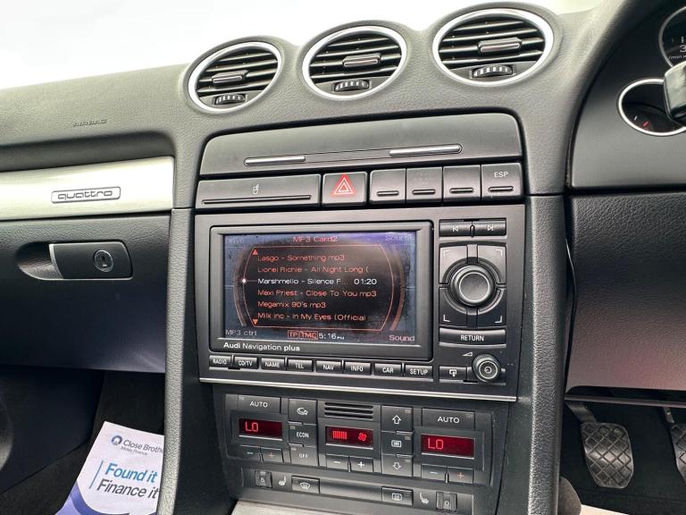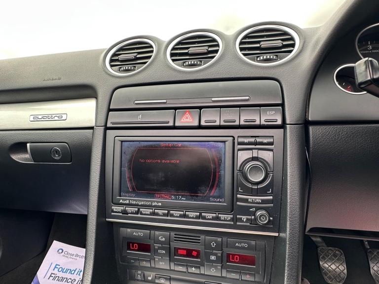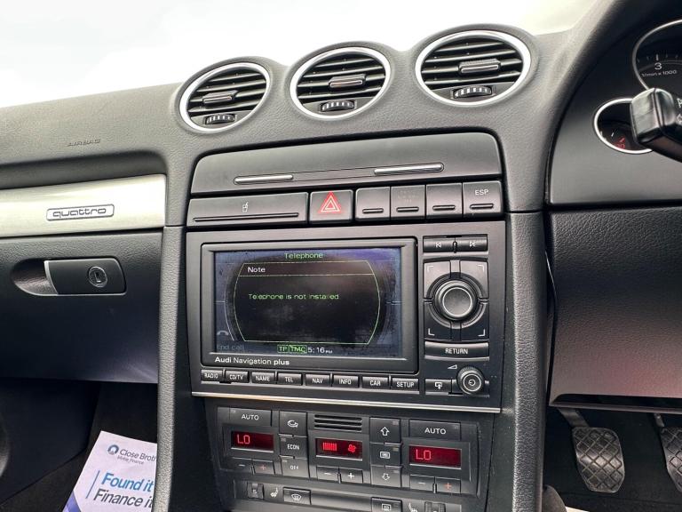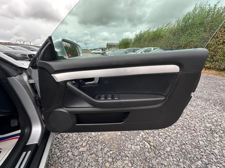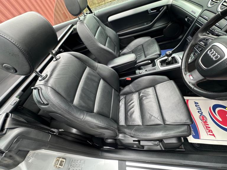 Specialist Cars are delighted to offer yet another carefully chosen Audi A4 Convertible. Finished in Light Silver Metallic with a contrasting Black Leather Interior Trim, this is a timeless combination. As with all the A4 Convertibles we source, we have very precise criteria and this car ticked the boxes necessary to join our stock, it has covered just 134,000 Miles and is backed by a meticulous service record, we have 11 stamps in the service book, all Audi up to 91,000 Miles and independent servicing thereafter, we do also have some invoices from the previous owner of 6 years, most notably a new battery and starter motor and a front suspension arm kit at 119,000 Miles, it certainly drives like it's been well cared for. We had collected this gem in person and had driven it the back to base from down south and it performed excellently; it even returned 45 MPG. Its overall condition both inside and out are great for a car of its age and mileage, the alloys are bright and glossy, as is the body work with no real blemishes to note. Moving inside, the interior has aged very well, the leather is in good shape, no major bolster wear or issues to note. Spec includes, optional S-line exterior package, RNS-E Satellite Navigation System, Bluetooth Audio System, Xenon Front Lights for clear night driving, 6 Stage Heated Seats, Full Black Leather, Ice Cold Climate Control and much more, it even comes complete with its dealer supplied book pack, 2 remote keys and the original rear wind deflector. This lovely example is fitted with the near bomb proof powerhouse that is the 3.0 V6 TDI, which produces a punchy 230 bhp and is mated to a slick 6 speed manual, it is an effortless car to drive and like all faster Audis this A4 has the famous Quattro All Wheel Drive system making this a proper year round car. Upon sale, we will supply this A4 with a safety pre-sale check over, MOT and we will also service it if it is due. We source lots of these, buy in confidence that if one of these is on our forecourt, it is definitely a great example.