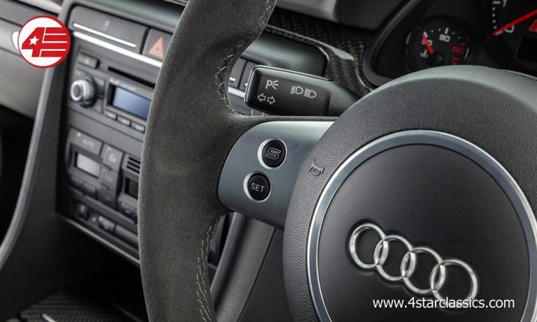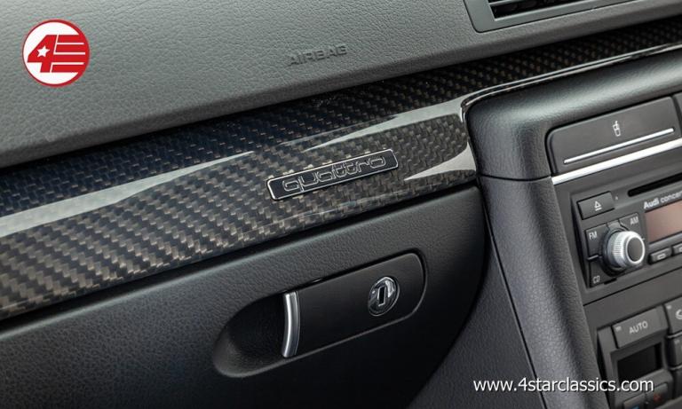 The high-revving naturally aspirated 4.2 V8 makes for an addictive soundtrack, and with its slick manual gearbox the B7 RS4 really is the driver's choice. The engine bay here is clean and tidy with only the usual discolouration to the otherwise immaculate carbon trim to report. The car is accompanied by an excellent maintenance record with every service other than one oil change in 2025 having been carried out by either Audi or independent Audi specialists. At the current mileage the RS4 has just returned from a main dealer service at Guildford Audi where it also received a glowing health check report; the passenger airbag recall was also carried out at this time.