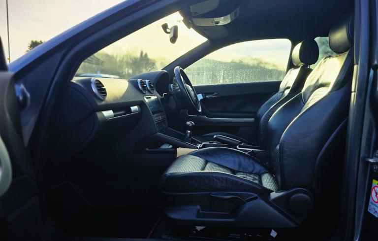 2007 AUDI S3 QUATTRO MANUAL (3 DOOR) FINIASHED IN STUNNING METALLIC SILVER WITH COMFORT SPEC BLACK LEATHER SEATS + 19 INCH TWIN 7 SPOKE ALLOY WHEELS + SAT NAV + MEDIA PACK + CRUISE CONTROL + XENON HEADLIGHTS + FRONT FOGS + CRUISE CONTROL + ABS + AIR CON + HEATED SEATS + COMPREHENSIVE SERVICE HISTORY + LOVELY CLEAN EXAMPLE + 2 KEYS + MOT UNTIL SEPT 2026 + ANY TRIAL/IMSPECTION WELCOME + STRICLY NO TIMEWASTERS + NO TEST PILIOTS + NATIONWIDE DELIVERY AVAILABLE (Please ask for a quote) + FIRST TO SEE WILL BUY + £4990 ovno + Steering Column/Wheel, Air Bag Driver, Air Bag Passenger, Air Bag Side, Alarm, Alloy Wheels (18in), Anti-Lock Brakes, Central Door Locking, Centre Rear Seat Belt, Climate Control, Computer (Driver Information System), Electric Windows (Front), Electronic Stability Programme, Exterior Lighting (Xenon Headlights), Front Fog Lights, Head Restraints, Immobiliser, In Car Entertainment (Radio/CD), Power-Assisted Steering, Seat - ISOFIX Anchorage Point, Seat Height Adjustment, Seats Heated (Driver/Passenger)
