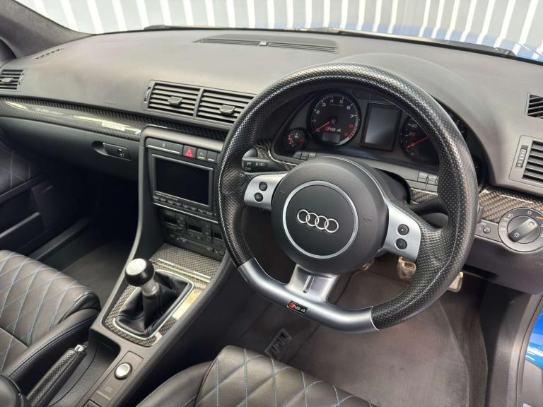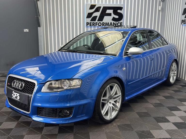 Introducing the Audi RS4 – where power meets precision in a stunning symphony of engineering excellence. This isn't just any car; it's a statement of intent, a testament to Audi's relentless pursuit of perfection. Finished in a striking Blue that captures the essence of sophistication and sportiness, the Audi RS4 is a saloon that commands attention on every road. Beneath its sleek exterior lies a beastly 4.2-litre V8 engine, delivering an exhilarating 439 ps. With a manual transmission that puts you in complete control, every drive becomes an unforgettable experience.This is a superb example, last owner of 15 years. Equipped with KW suspension, carbon cleaned at MRC and benefits from their stage 2 package. No expense spared, maintained to a very high standard with documented service history.The quattro all-wheel-drive system ensures unparalleled grip and stability, making the RS4 a master of both the open road and the tightest of corners. Whether you're cruising through the city or unleashing its full potential on the motorway, the RS4 offers a driving experience like no other.Inside, the RS4 is a sanctuary of luxury and technology. Premium materials and meticulous craftsmanship create an environment that is both comfortable and cutting-edge. With intuitive controls and advanced features at your fingertips, every journey is as enjoyable as it is thrilling.The Audi RS4 is more than just a car; it's a lifestyle choice for those who demand the very best. Experience the perfect blend of performance, style, and innovation. Drive the Audi RS4 today and discover what it truly means to be in the driver's seat.