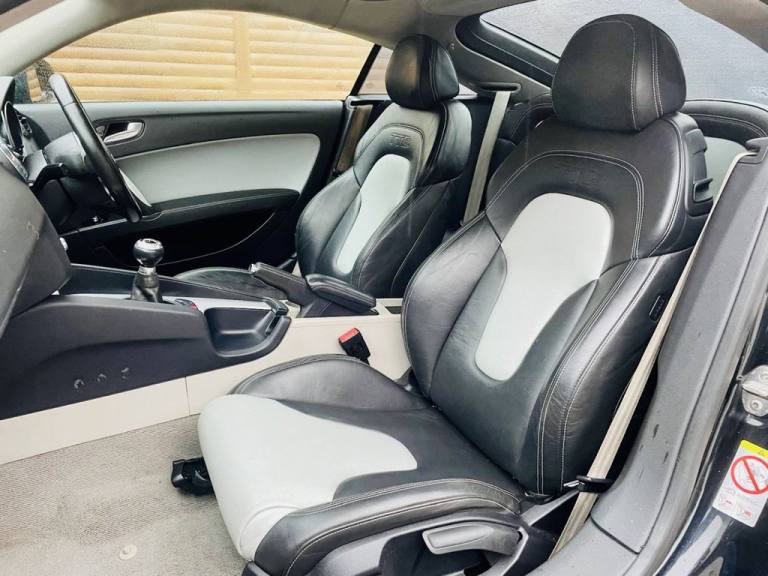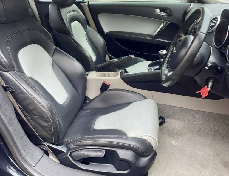 2007 AUDI TT 2.0 TFSI 3D 200 BHP TTS FULL 2 TONE LEATHER UPGRADE / FLAT BOTTOM STEERING , SERVICE HISTORY, SERVICED @, 15K, 71K, 79K, 84K, 91K, 106K 111K, TIMING BELT WP REPLACED @ 111K IN 2016 But following this the history has been lost but will have a fresh full service and new MOT by ourselves before sale. The exterior is fully colour coded in metallic black with 5 spoke 17 alloy wheels, privacy glass, front fog lights and smoked lights. The interior has been fully upgraded with two tone leather TTS seats, leather flat bottom steering wheel, aluminium dashboard trim and carpet over mats!!! The specification comprises of 3 stage heated seats, climate control with air conditioning, on board computer, electric windows, electronic rear spoiler, electric heated door mirrors, remote central locking, CD - Radio player, 6 speed gearbox and more.....!!! Represents fantastic value for money. All our vehicles over £3000 come with our 5 Star package! * Full service with new oil, oil filter, air filter and pollen filter, and brakes, lights and levels checked. * Minimum of 9 Months MOT or a will have a Brand new one! * 6 Month comprehensive parts and labour warranty F.O.C.! * Full valet prior to collection! * HPI Clear with PDF Report (unless clearly stated otherwise) Extended warranties available at competitive rates. Give us a call to make your next purchase a special purchase. FCA Regulated, Finance available Subject to status! 5 Day Driveaway insurance available at small cost (circa £30) to get you on the road sooner than you think. Secure any car with a small deposit. Airport/Train station collection service All our Part X to clear cars (under £3000) come with our Budget 4 star package! * Minimum of 5 Months MOT or a will have a Brand new one! * Lights and levels checked! * HPI Clear with PDF Report (unless stated) * 3 months Major mechanical parts warranty.LEATHER 2 TONE TTS SEATS UPGRADE, FLAT BOTTOM STEERING WHEEL, HEATED SEATS, FULL SERVICE AND NEW MOT, 3 M WARRANTY WITH OPTION TO UPGRADE, 17in Trapez Alloy Wheels, 3Spoke Sports Leather Steering Wheel, 5- channel Amplifier, 9 Speakers, Front Passenger Airbag deactivation, Front Passenger Seat isofix location point, Front Sports Seats, Front floor mats, Front side Airbags, Height adjust Front Seats, Radio & CD & MP3, Scuff plates with metal inlays