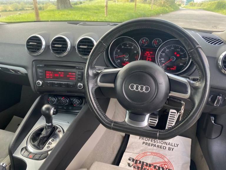 A fantastic example of the ever-popular Audi TT, finished in a rare and elegant beige that really sets it apart. This 2.0 TFSI model delivers an excellent blend of performance and comfort, producing 200 PS and paired with the smooth and responsive S Tronic automatic gearbox. This car has been well cared for and comes with a full service history, giving real peace of mind to its next owner. It drives superbly, offering sharp handling, strong acceleration, and the solid build quality Audi is known for. Key Features: 2.0 TFSI Petrol Engine (200 PS) S Tronic Automatic Gearbox Full Service History Stylish Coupe Design Unique Beige Exterior Sporty, Driver-Focused Interior Smooth and Responsive Drive Excellent Reliability and Performance The Audi TT remains one of the most iconic coupes on the road, offering both everyday usability and genuine driving enjoyment. Whether youre after a stylish commuter or a fun weekend car, this TT ticks all the boxes. •Here at CARS Worcester, we go the extra mile to make your purchase extraordinary and hassle free. Every car comes with unbeatable perks: FREE 12 MONTHS MOT, FREE Interim Service, FREE HPI Check, FREE MOT History Check, Includes 12 Months Nationwide Warranty with Evolution Warranties - just £150 each, split 50/50 between dealer and buyer for extra peace of mind, FREE Professional Valet. Ready for a test drive? Call us to schedule your viewing. We also offer hassle-free finance options through our website, which ranges from 12 to 60 months, featuring competitive fixed interest rates tailored to suit all credit profiles. Explore NIL DEPOSIT FINANCE with the support of our specialist brokers, catering to both Prime and Sub-Prime credit providers. With over 40 years of expertise, our family business is committed to providing unparalleled advice and answering any questions you may have. Contact Us: - 01905724144 - [Email address removed. Click Email button to contact us.] - [Website URL removed] Trapez Alloy Wheels, 3Spoke Sports Leather Steering Wheel, 5- channel Amplifier, 9 Speakers, Front Passenger Airbag deactivation, Front Passenger Seat isofix location point, Front Sports Seats, Front floor mats, Front side Airbags, Height adjust Front Seats, Radio & CD & MP3, Scuff plates with metal inlays