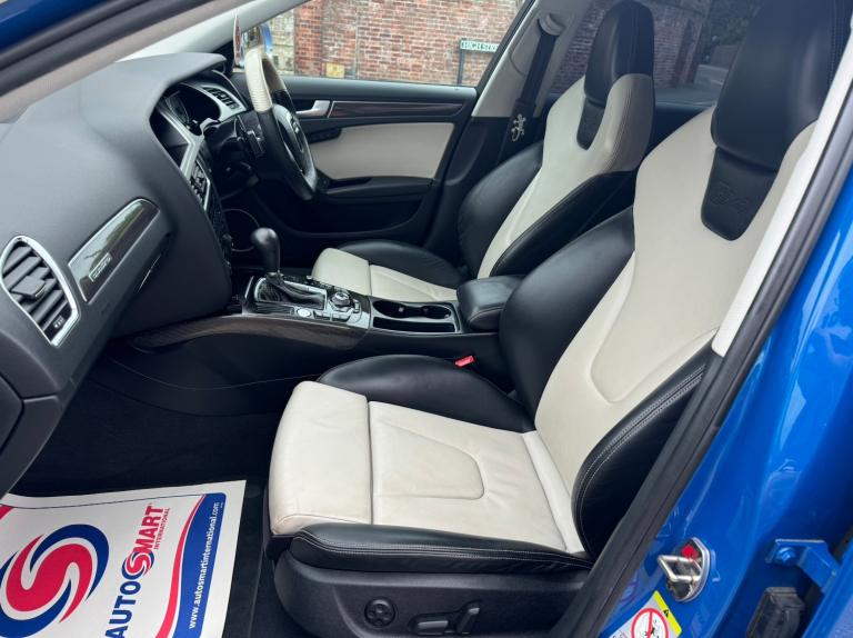 Stunning High spec Audi S4 3.0 TFSi Automatic Quattro Avant, Presented in Sprint Blue with full Black/White Leather sports seats, Bang & Olufsen speakers, Electric front seats with drivers memory, Xenon headlights, Heated seats, Power folding mirrors, Carbon fibre inlays, 19'' Alloys We have a regular supply of fantastic quality cars coming over from Japan, with the majority being high spec European models. We are importing more and more of them due to the superior condition, higher specification and rarer models. All of our cars are fully checked over, valeted, converted from km/h to mp/h and come with new MoT's. Every car comes with VAT and Import duties paid in full. All parts and servicing will be exactly the same as a UK vehicle., 19'' Alloys
