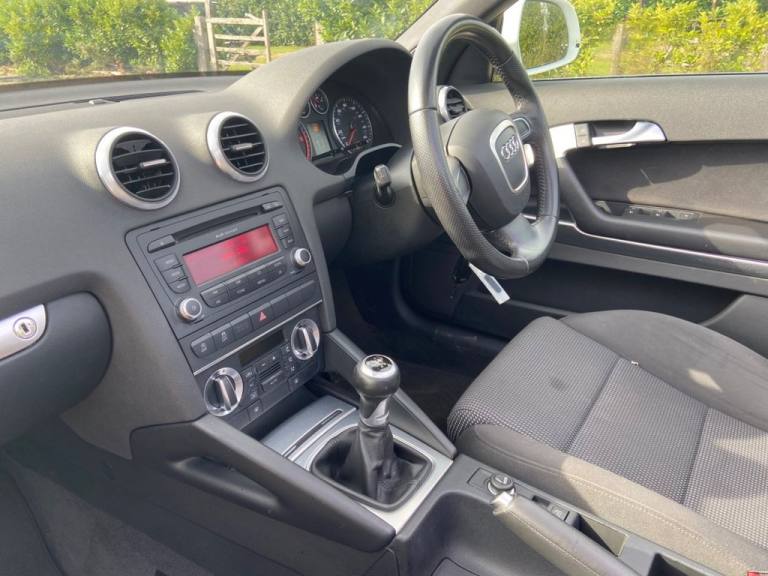 Introducing our Audi A3 Cabriolet finished in a Ice white this example has covered just 85,000 miles and comes with great service history 2 keys logbook and owners manual present. Just been serviced and mot with no advisories. Great driving car engine sounds as it should goes through the gears with ease. Bodywork in good condition and interior clean with no rips or bad odours. Roof works as it should. Spec includes AC, front and rear heated screens. Warranty included. All our cars undergo an extensive PDI check and a 50 mile road test to assure they perform as expected. Call now to arrange your viewing!.Cloth- Dynamic- Black & Silver, Comfort Pack Cabriolet, Audi Exclusive Controls Pack, Aluminium gear knob, First aid kit, Audi Exclusive- Steering Wheel, Black styling Pack, 17in 10Spoke V Design Alloy Wheels- High Gloss finish, 17in 5 arm kinetic design Alloy Wheels, 17in 5Spoke Star design Alloy Wheels, 3Spoke Leather Sports Steering Wheel, Aluminium door handle strips, Aluminium roll bars, Aluminium shoulder line Trim, Black headlining, Concert single CD player with MP3 facility & Aux in, Deletion of model & engine designation at Rear, Medial Aluminium inlay, Non smoking Pack, Silver headlining