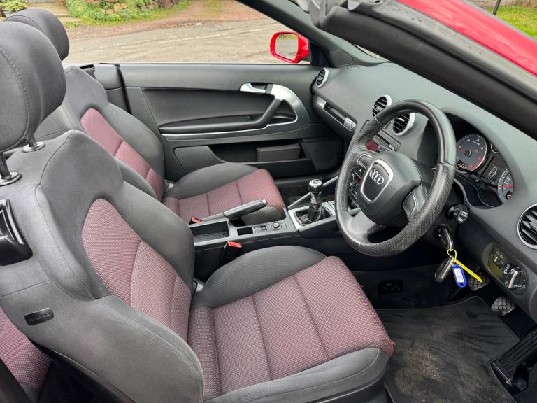 10/60 Audi A3 Convertible 2.0 TDi Sport 2Dr Red with charcoal cloth interior ONLY 69000 MILES,Averaging less than 5K Miles Per Year. MOT October 2026. ABSAIR CON ALLOYS CRUISE CONTROLELECTRIC ROOFELECTRIC WINDOWS RADIO CDREMOTE CONTROL CENTRAL LOCKING TINTED WINDOWS BodyBody and paintwork in great condition, drives superbly, roof in good working order. Audi build quality and reliability . Low mileage diesel Convertible. BARGAIN !!For more information call or text Peter at Westro Motors