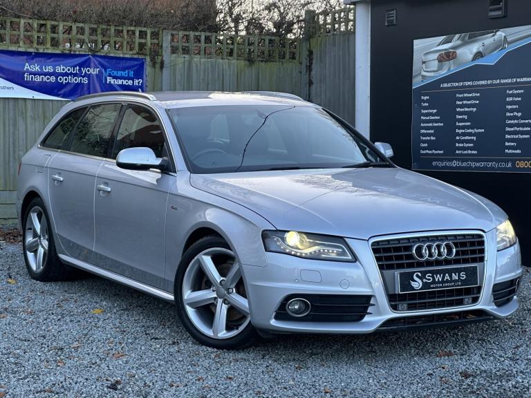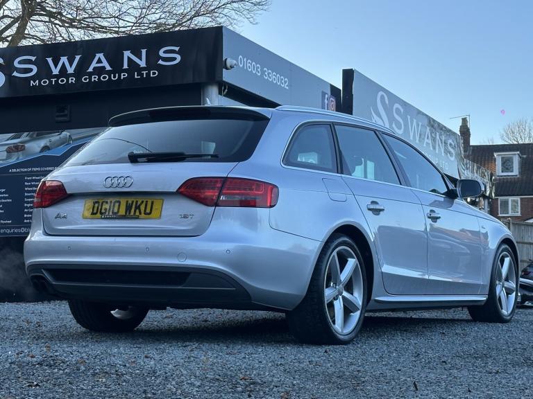 2010 Audi A4 Avant 1.8 TSFI Executive S-line 5 Door Estate Silver -90805 MILES. -4 FORMER KEEPERS. -305 POUNDS ROAD TAX PER YEAR. -HPI CLEAR. -5 SERVICE ENTRIES IN TOTAL. ALL OF WHICH AUDI MAIN DEALER All of our retail vehicles are sold with the Swans Promise, and will go through our rigorous preparation process which includes: -A minimum of 9 months MOT at point of sale. -No-obligation 2 Year Service Plan quote provided for every customer. -A routine service carried out, if due within next 3 months or 3,000 miles at point of sale. -Thorough safety check and road test carried out by our experienced vehicle technicians. Our on-site workshop takes pride in professionally preparing your new car to a satisfactory standard. -3 Months Warranty (Upgrades available, please ask for details). -Full HPI Report - all of our cars are HPI checked. -Drive away insurance available, please ask for details -We do not charge any admin fees* **PART EXCHANGE AVAILABLE** **PARTNERS WITH CLOSE BROTHER MOTOR FINANCE** **COMPETITIVE FINANCE OPTIONS AVAILABLE FOR ALL CREDIT PROFILES, APPLY BELOW AND GET ACCEPTED TODAY! ** **BROKERS CHARGE FEES, WE DO NOT! TALK TO US FOR A NO-OBLIGATION QUOTE TO ENSURE YOU GET THE LOWEST MONTHLY PAYMENT POSSIBLE** **EVERY CAR RECEIVES A PROFESSIONAL VALET UPON ARRIVAL AND REFRESH PRIOR TO COLLECTION** **ASK ABOUT OUR UPGRADED VALETING OPTIONS** Swans Motor Group are proud to be a highly reputable, family run used vehicle dealership in the Norwich area. Having originally established our business in 2012, we have a friendly team who all benefit from previous main-dealer experience cited to assist you along the journey of purchasing your next vehicle. We have over 60 combined years of experience in various sectors of the motor industry, so you can rest assured that you are in safe hands with Swans. Customer satisfaction is our number one priority; therefore, we offer a stress-free, personable buying experience. We look forward to welcoming you to our business soon! We are located close to Norwich City Centre, at 231-245 Heigham Street, Norwich, NR2 4LN. DISCLAIMER Although we make every effort to ensure our advertised vehicle specifications are correct, due to being computer-generated, there can sometimes be errors. Please call us to verify any vehicle specifications if you are unsure or require clarification. Admin fees may apply when using out-of-house finance companiesbrokers Please contact us for details. We do not charge any admin fees for using our in-house finance options.