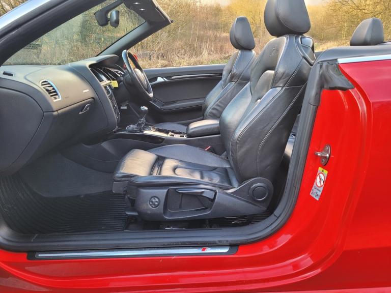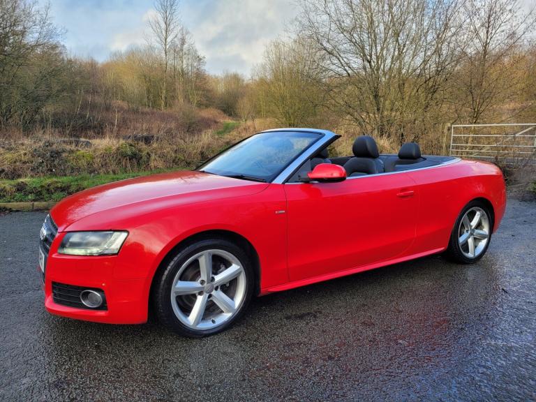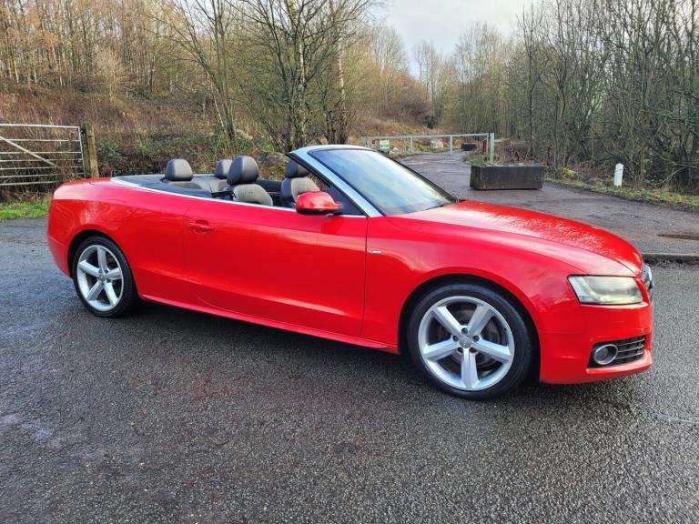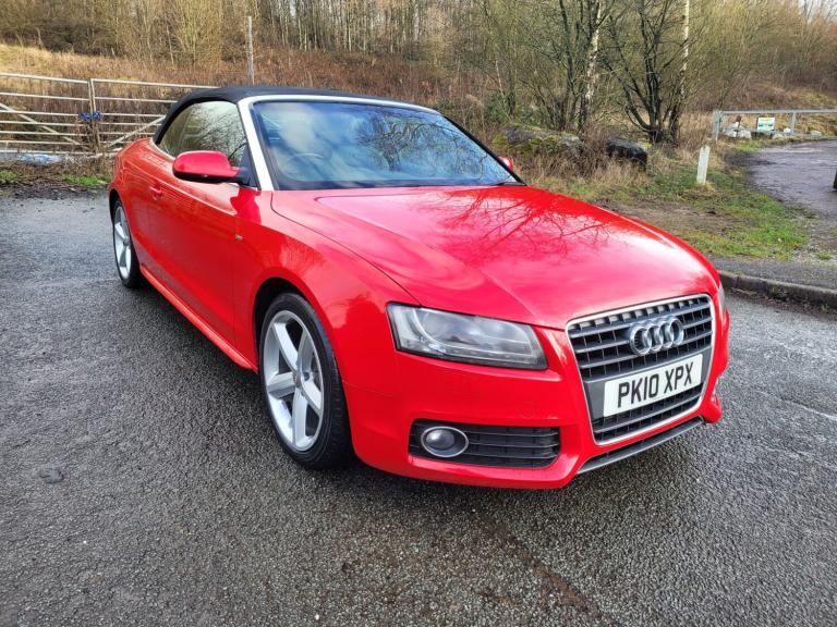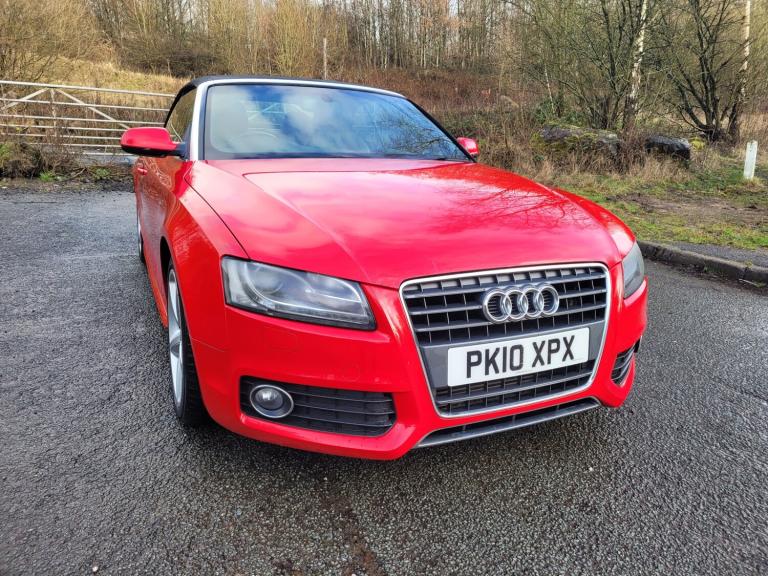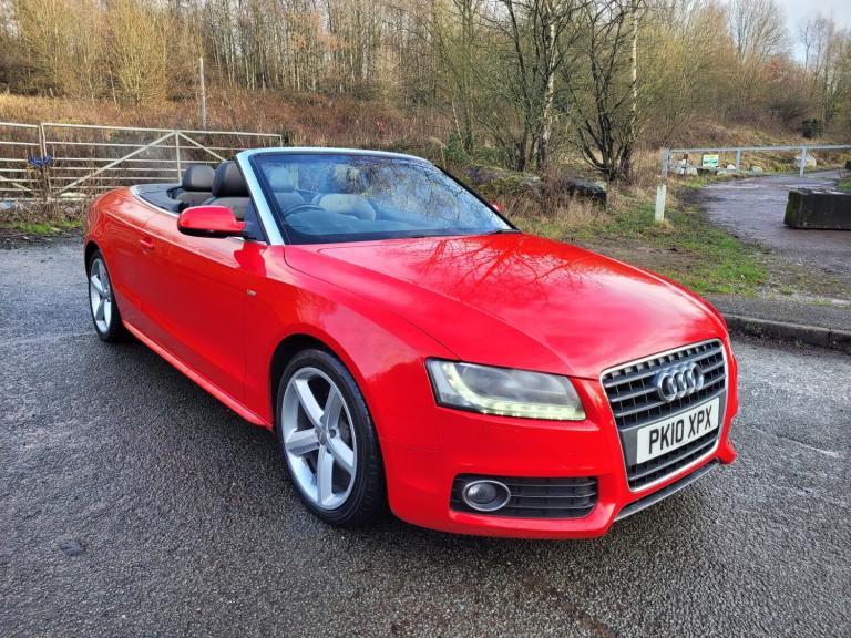 2010 AUDI A5 S LINE CONVERTIBLE RED3 DOOR 170 BHP MANUAL 6 SPEED * HPI CLEAR ** 12MONTHS MOT ** SERVICE HISTORY *FRONT FOG LIGHTS AUTO LIGHTS ALLOY WHEELS ELECTRIC MIRRORS ELECTRIC WINDOWS ELECTRIC PARK BRAKE AIR CONDITIONING ELECTRIC HOODHEATED SEATS DUAL CLIMATE CONTROL BLACK LEATHER S LINE INTERIOR MULTI FUNCTIONAL STEERING WHEEL STOP START TECH PUSH START IGNITION POWER STEERING ABS PAS CUP HOLDERS CENTRAL LOCKING IMMOBILISER 2 KEYS LOGBOOK PRESENT PX WELCOME PRICED AT £4,300TEST DRIVE WELCOME STARTS 1ST TIME DRIVES EXCELLENT GOOD ENGINE GEARBOX CLUTCH PULLS NICELY THROUGH ALL GEARS BEAUTIFUL EXAMPLE OF A USED CAR