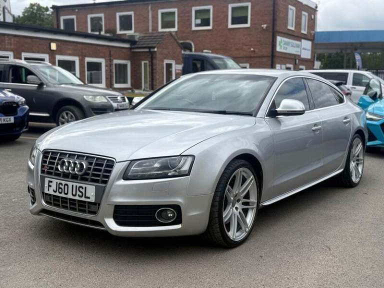 6 CD changer,Rear side airbags,Technology pack 1 - A5 Sportback,Advanced key,Tyre pressure monitor,Bluetooth mobile phone connection,DVD Satellite Navigation,Cruise Control,Audi parking system plus with front and rear sensors,Convenience pack - S5 Sportback,Audi Exclusive leather pack 2 - Valcona - A5,Audi parking system advanced,Bang + Olufsen advanced sound system,Leather trim for door armrests,Heated front seats,20"" 7 arm double spoke alloy wheels,Metallic - Ice silver, 10 Speakers, 12V Power Socket x2, Concert Radio - MP3-CD Player, Concert Radio & CD player with MP3 SD card reader & Aux input socket, Acoustic Parking System - Rear, Drivers Information System - DIS, 19in 5 parallel Spoke design Alloy Wheels, 19in Alloy Wheels - 20-Spoke Design, Door Mirrors - Electrically Adjustable and Heated, Electric Windows - Front and Rear, Light and Rain Sensor Package, Space Saver Spare Wheel, Bi-Xenon Headlights, Front Fog Lights, Headlights - Automatic Adjustment, Headlights Washers, Automatic Wipers with Rain Sensor, Climate Control - Electronic 3-Zone, Cloth Headlining in Black, Delete engine designation at Rear, Deletion of model & engine designation at Rear, Electrically Adjustable 4-Way Lumbar Support, Front Centre Armrest, Front&Rear floor mats, Inlays - Matt Brushed Aluminium, Interior Light Package, Matt brushed Aluminium inlay, Piano Black finish inlay, Seats - Front Electric Adjustment, Split-Folding Rear Seats, Steering Column - Rake and Reach Adjustment, Steering Wheel - 3-Spoke Leather - Multi-function - Sports, Through-Load Facility with Ski-Snowboard Bag, Power Steering - Servotronic, S Sport Suspension, ABS - Anti-Lock Braking System, Airbags - Driver, Airbags - Front Passenger, Airbags - Front Side System, Alarm - Thatcham Category 1, ESP - Electronic Stability Programme, First Aid Kit, Intelligent Key, ISOFIX child seat preparation Front and Rear with passenger airbag deactivation switch.Here we have an Audi S5 Sportback in great condition with Full Service History and only 2 owners from new. The interior and exterior of the car have been looked after very well, it starts and drives perfectly with no issues at all. We have just completed a Full Major Audi Service alongside a new 12 Month MOT. The car will be sold with extendable Warranty. We also offer Part Exchange / Delivery / Finance, HPI report available on request. Please call us on [Phone number removed] or 01217714411 for further enquiries., ===============================================================================, Why not read our AutoTrader reviews to see what our customers think about their experience here and why they choose to buy from us, ===============================================================================, Please contact our sales department for the latest finance offers on this vehicle. We have a dedicated team researching our used car prices daily to make sure we offer the best value cars in the market, ===============================================================================, To arrange a personal viewing of this amazing car, or if you would like a tailored video to be emailed to you then please contact us. ===============================================================================, Please give us a call for directions. Our postcode for Sat Nav direction is B11 2NT. • Finance subject to status, T&C's apply. , =============================================================================== -