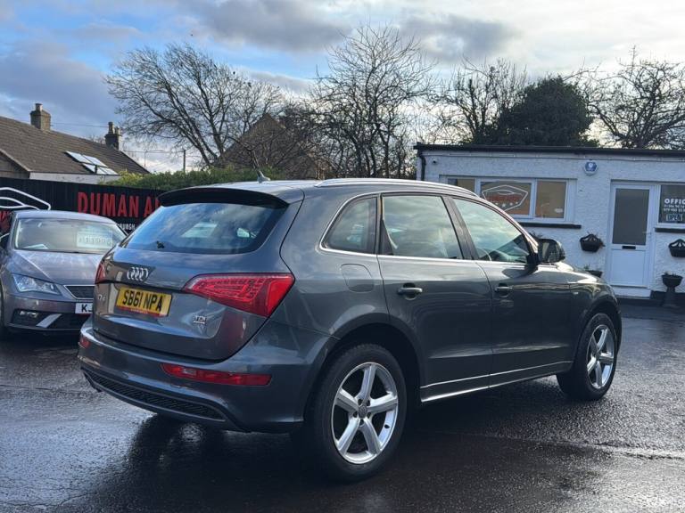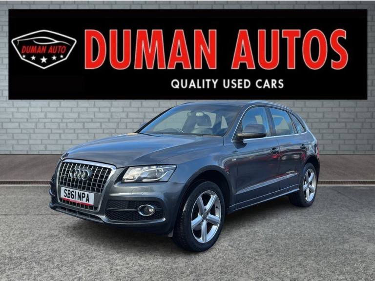 This Audi Q5 TDI S line from 2011 offers peace of mind with a clear vehicle history check. This desirable four wheel drive model is powered by an efficient 2.0 litre diesel engine and features the sporty S line trim. Youll appreciate the advanced Bi Xenon Plus headlights for excellent visibility, while the 1 zone climate control ensures a comfortable cabin temperature. Parking is made easier with the acoustic parking system at the rear. The Q5 TDI S line boasts a generous boot space, making it incredibly practical for everyday use and longer journeys. The combination of its four wheel drive system, powerful yet economical diesel engine, and the premium S line specification means this vehicle offers a superior driving experience compared to many others in its class. THIS CAR COMES WITH 6 MONTHS WARRANTY , BREAKDOWN COVER & RECOVERY + PARKING SENSORS FRONT AND REAR+ DAY-TIME RUNNING LIGHTS+ AUTO TAILGATE+ MEDIA+ BLUETOOTH+ RADIO+ SAT NAV+ HEATED SEATS+ CRUISE CONTROL+ AUTO HEADLIGHTS+ AUTO WIPERS+ FOG LIGHTS FRONT+ S-LINE+ MULTI FUNCTION STEERING WHEEL+ LEATHER STEERING WHEEL+ ELECTRIC PARKING BREAK+ HANDS FREE+ 19 INCH ALLOYS+ AUDI DRIVE SELECT+ FINANCE AVAILABLE+, NATIONWIDE DELIVERY AVAILABLE+, EXCELENT CUSTOMER SERVICE+, 6 MONTHS WARRANTY+, BREAKDOWN AND RECOVERY+ Call us for more information..FINANCE AVAILABLE+, NATIONWIDE DELIVERY AVAILABLE+, EXCELENT CUSTOMER SERVICE+, 6 MONTHS WARRANTY+, BREAKDOWN AND RECOVERY+, Audi Parking System Advanced, Audi Parking System Plus, Tyre Pressure Loss Indicator, Audi Drive Select, DAB Digital Radio, Audi Hill Hold Assist, Rear Side Airbags, Power Operated Tailgate, Steering Wheel - Audi Exclusive Leather Covered, Sun Visors - Retractable and Extendable, Steering Wheel - 4-Spoke Leather/Shift Paddles, Inlays - Piano Finish - Black, Heated Front Seats, Door Mirrors - Heated-Electrically Adjustable-Folding and Auto Dimming with Memory Function, 19in Alloy Wheels - 5-Spoke Design, ABS - Anti-Lock Braking System, AUX-IN Socket, Acoustic Parking System - Rear, Airbags - Driver, Airbags - Front Passenger, Airbags - Front Side System, Airbags - Head System, Alarm - Thatcham Category 1, Aluminium Roof Rails, Audi Sound System, Auto-Dimming Rear-View Mirror, Automatic Wipers with Rain Sensor, Climate Control - 1-Zone, Cloth Headlining in Black, Colour Drivers Information System - DIS, Concert Radio - MP3-CD Player, Door Mirrors - Electrically Adjustable and Heated, ESP - Electronic Stability Programme, Electric Windows - Front and Rear, Electrically Adjustable 4-Way Lumbar Support, First Aid Kit, Front Centre Armrest, Front Fog Lights, Headlight Washers, Headlights - Automatic Adjustment, Headlights - Bi-Xenon Plus, ISOFIX child seat preparation Front and Rear with passenger airbag deactivation switch, Inlays - Matt Brushed Aluminium, Light and Rain Sensor Package, Power Steering - Servotronic Speed-Dependent, Remote Central Locking, Split-Folding Rear Seats, Steering Wheel - 3-Spoke Leather - Multi-function - Sports - Shift Paddles, Steering Wheel - Multi-function