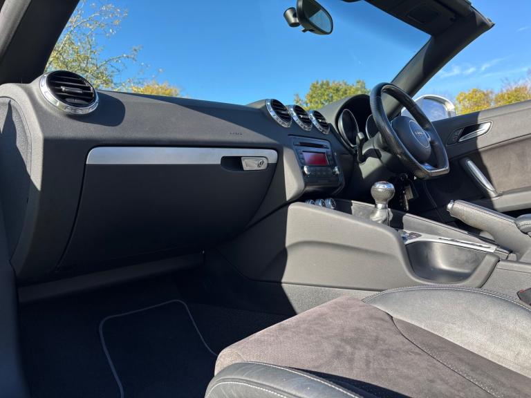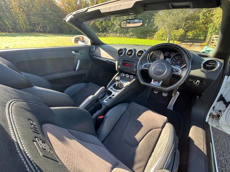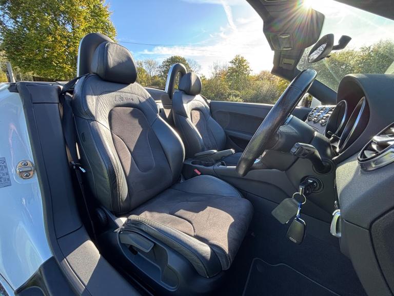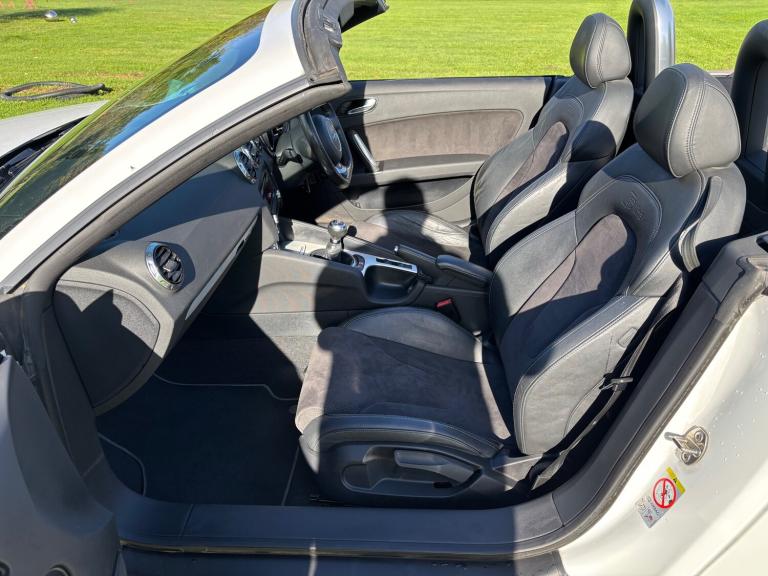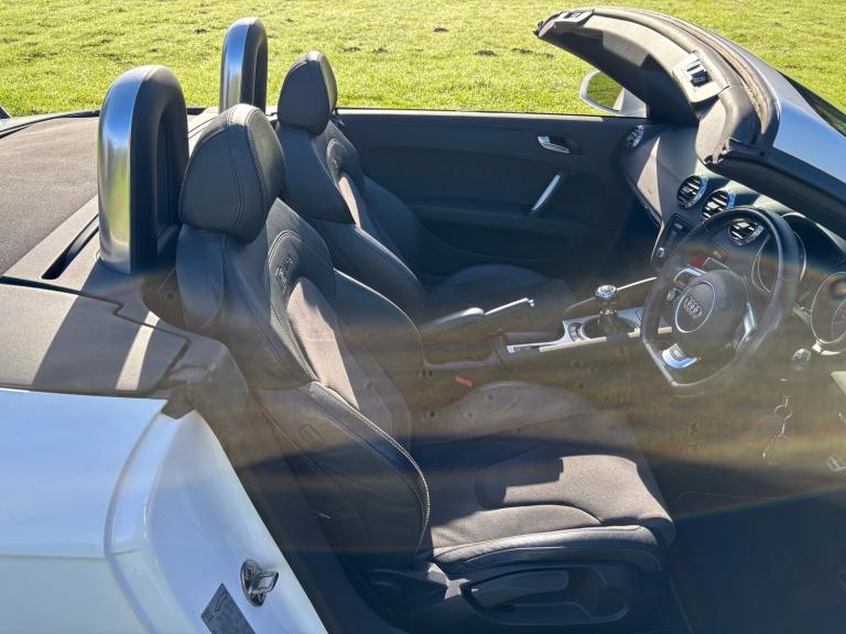 Odin Automotive are pleased to present this gorgeous Audi TT cabriolet finished in striking White non-metallic with a contrasting Black leather & alcantara interior. We took this 3 owner example in part exchange and it is offered for sale with service history, original book pack and 2 remote keys. Spec-wise this TT has some great options including an electrically retracting wind deflector, Bluetooth telephone connectivity and electric heated door mirrors. Outside there are 18'' S-line alloys - recently refurbished in gloss black and Xenon headlights. As with all of our cars this Audi will undergo a thorough Pre Delivery Inspection, has been recently serviced and will be sold with a new MOT. We also include a 12 month Bluechip parts & labour warranty for total peace of mind. We welcome part exchanges and would like to make all of our customers aware that we operate strictly by appointment only, so please do get in touch ahead of planning your visit to us., Features Include: , 12v power socket, aux-in socket, concert radio, 18in alloy wheels - 5-spoke design, door mirrors - electrically adjustable and heated, electric windows - front, fully automatic electrically operated soft top, tyre mobility system, abs - anti-lock braking system, asr - anti slip regulation, airbags - driver, airbags - front passenger, airbags - front side system, anti-theft alarm, esp - electronic stability programme, isofix child seat mounting for front passenger with airbag deactivation, remote central locking, roll-over protection bars, climate control - electronic, cloth headlining in black, inlays - matt brushed aluminium, seats - drivers manual height adjustment, steering wheel - 3-spoke leather - multi-function - sports, steering wheel - height and reach adjustable, steering wheel - multi-function, drivers information system - dis, power steering - electromechanical/servotronic speed sensitive, s line suspension, suspension - s line, front fog lights, headlights - bi-xenon plus, headlights washers