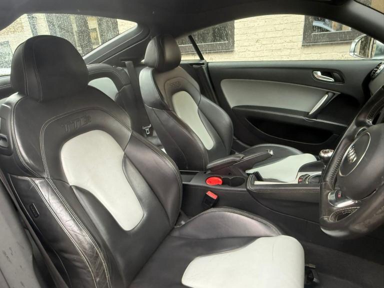 Audi TTS Coupe – Immaculate Low Mileage Example – Quattro – Service History – Silver with Black/Grey Leather A superb example of the highly sought-after Audi TTS, finished in timeless metallic silver with black and grey leather interior. This particular car is an immaculate low-mileage example that has clearly been cherished, offering the perfect combination of performance, build quality and everyday usability. The TTS sits at the performance end of the TT range and is powered by Audi’s 2.0 TFSI turbocharged engine producing 272bhp, paired with the legendary quattro all-wheel drive system. This delivers exceptional grip and performance, launching the car from 0-60mph in just over 5 seconds while maintaining excellent road manners and practicality. The TTS has become increasingly desirable, offering a genuine modern classic feel with sharp styling, strong performance and the renowned Audi build quality. Many enthusiasts specifically seek out well-maintained, low mileage examples, making this a fantastic opportunity to own one in outstanding condition. Key Features & Specification • 2.0 TFSI Turbocharged Engine – 272BHP • Quattro All Wheel Drive • 6 Speed Gearbox • Full Leather Sports Interior – Black/Grey • Heated Sports Seats • Xenon Headlights with LED Daytime Running Lights • Audi Concert Media System • Climate Control • Multi-Function Steering Wheel • TTS Styling Package • Alloy Wheels • Service History • 2 Keys This car drives exactly as it should with strong performance, precise handling and the solid feel Audi is renowned for. Supplied With • Comprehensive Warranty Options • Competitive Finance Packages Available • Part Exchange Welcome • Fully HPI Clear A genuinely excellent example of the increasingly sought after Audi TTS, offering serious performance and timeless styling in a well-maintained and low mileage package.