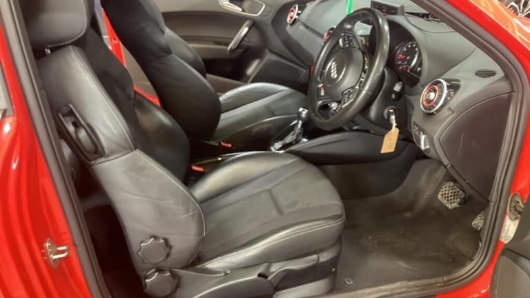 This superb little 2012 12-Reg Audi A1 1.4 TFSI S-Line Auto must be seen and driven!!!! Presented in stunning Misano Red with black half leather sports trim and covered 89,000 miles from new! two previous owners, service history and a lovely specification! extras include Bluetooth phone prep, auto lights and wipers, air con, USB/media interface, multi function steering wheel, 17"" alloy wheels and full S-Line styling with rear spoiler, great little car with low tax and insurance group, lovely little petrol engine giving 122 bhp means it is also fully ULEZ Compliant!!!