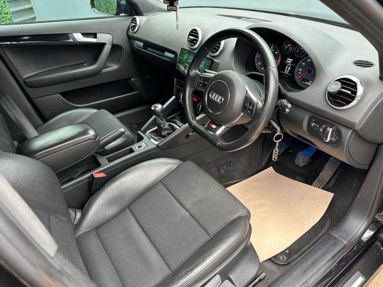DMC IS DELIGHTED TO BRING YOU THIS PRESTIGIOUS AUDI A3 2.0 DIESEL BLACK EDITION, 5 DOOR, FINISHED IN METALLIC BLACK, WITH A FULL SERVICE HISTORY AND TIMING BELT CHANGED AT 70,000 MILES AND AGAIN AT 120,000 MILES THIS IS A QUALITY USED VEHICLE WHICH HAS BEEN MAINTAINED THROUGHOUT ITS LIFE COMES WITH A FEW EXTRAS SUCH AS UPGRADED MEDIA SCREEN, UPGRADED RS3 FRONT BUMBER, FOOTWEL AMBIENT LIGHTING, UPGRADED ALLOY WHEELS, SPOILER AND PRIVACY GLASS, LOOKS THE PART, ALSO COMES WITH + Power steering + Steering Controls + Electris Windows + radio + Apple Play + Satalite Navigation + Flat Bottom Steering wheel +Rear boot spoiler + Bosh Sound system + Part Leather Seats + in great condition throughout + WILL HAVE A FRESH MOT AND SERVICE BEFORE IT LEAVES.