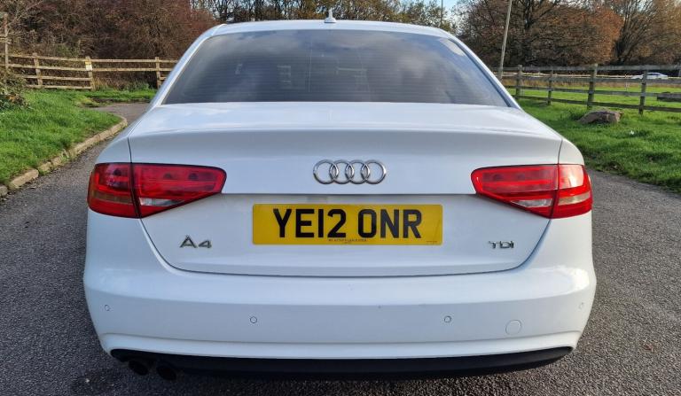 12 reg. Registered 18 May 2012. Diesel. Four door saloon with six speed manual gearbox. Finished in solid white with a smart leather interior. Covered one hundred and thirty six thousand miles with full service history. A brand new clutch has just been fitted and the car will come with twelve months MOT.This Audi A4 2.0 TDI SE Technik offers a refined, economical and reliable driving experience. It has had three owners from new and has been very well maintained. The two litre diesel engine with one hundred and seventy seven horsepower delivers strong performance while still achieving over fifty five miles per gallon combined.Main features include heated front seats, MMI Navigation Plus with updated maps, front and rear parking sensors with visual and acoustic display, three zone climate control with rear temperature controls, Bluetooth connectivity, Audi sound system, cruise control, auto dimming rear view mirror, heated and power adjustable mirrors and seventeen inch SE Technik alloy wheels. Also equipped with auto opening boot lid, a full set of airbags, ABS, ESP, longlife servicing system and space saver spare wheel with toolkit.The car is in excellent condition inside and out. Part exchange is welcome and warranty is available. For more information or to arrange a viewing please call directly.