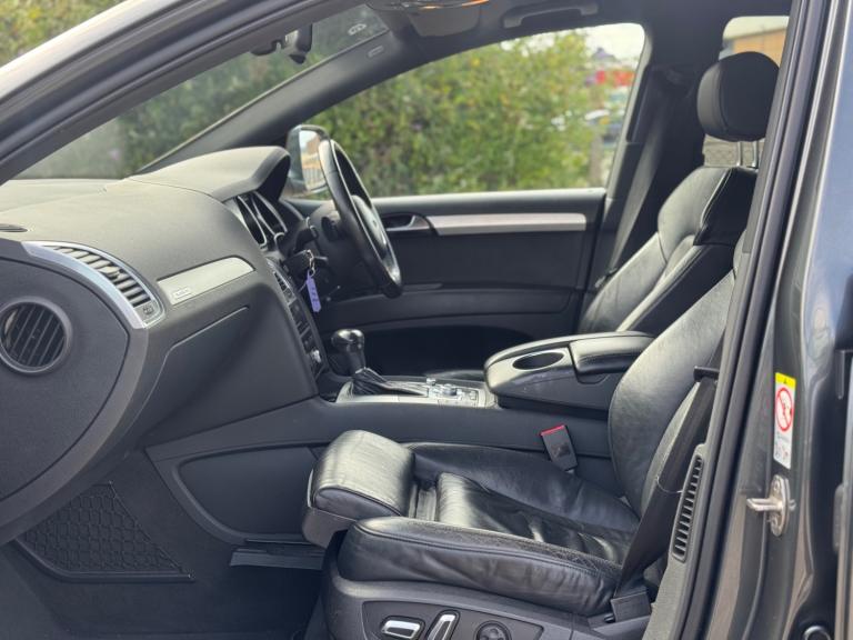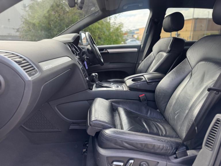 Audi Q7 3.0 TDI Quattro S Line Plus, black alloy wheels, full service history, air suspension, 7 seater, black leather interior, automatic memory seats, rear air con and vents, DAB radio, Bluetooth, FM radio, LED lights, reverse camera, parking sensors front and rear, ice cold air conditioning, central locking, smooth automatic gearbox, powerful and reliable diesel engine, will be sold with a fresh MOT, excellent condition inside and out, drives superb.